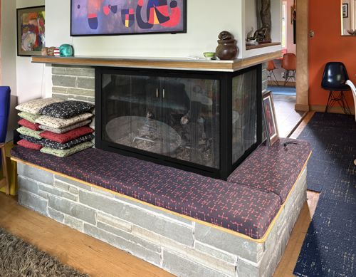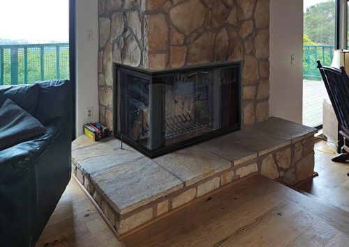 These are pictures provided by some of our customers who purchased doors for their corner fireplace.