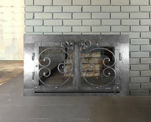 Example #9: Brookfield ZC Deluxe Multi-Sided Aluminum Fireplace Door. Shown in Vintage Iron.