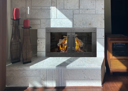 Shown Above: Industrial Age 4 Cabinet Door Frame in Hot Roll Natural Iron.