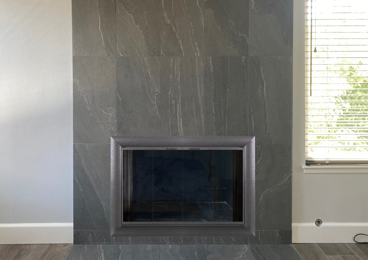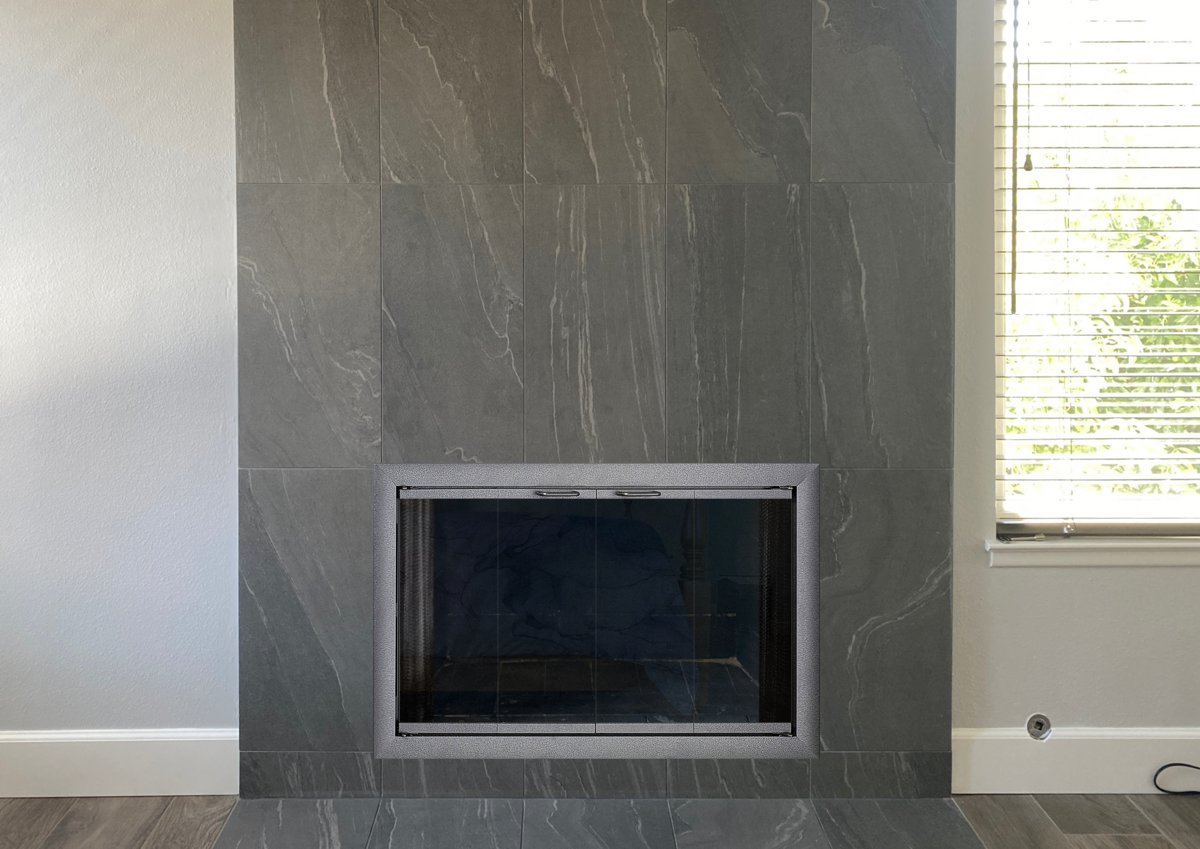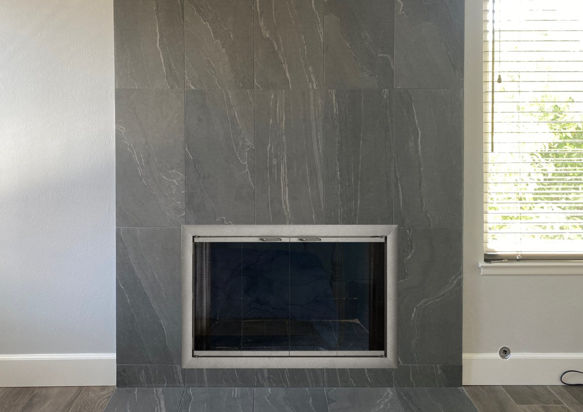 Customer Comments: We are thinking that the Aluminum Brookfield or Bungalow door would be a good fit for our fireplace. The finishes we were thinking of are Dark Pewter, Natural Iron and Sharkskin. If you are limited to only three samples then only use Brookfield. Window pane option would be standard rectangle, twin doors, clear glass. Read more comments below.