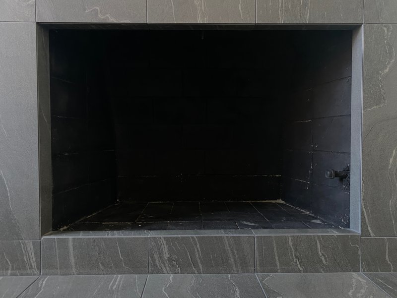 * Please note that the left side of the opening is not perpendicular with the fireplace front surface, the opening measurement is 35 1/4" at the front surface and 34 7/8" at the firebox, if that makes any difference.