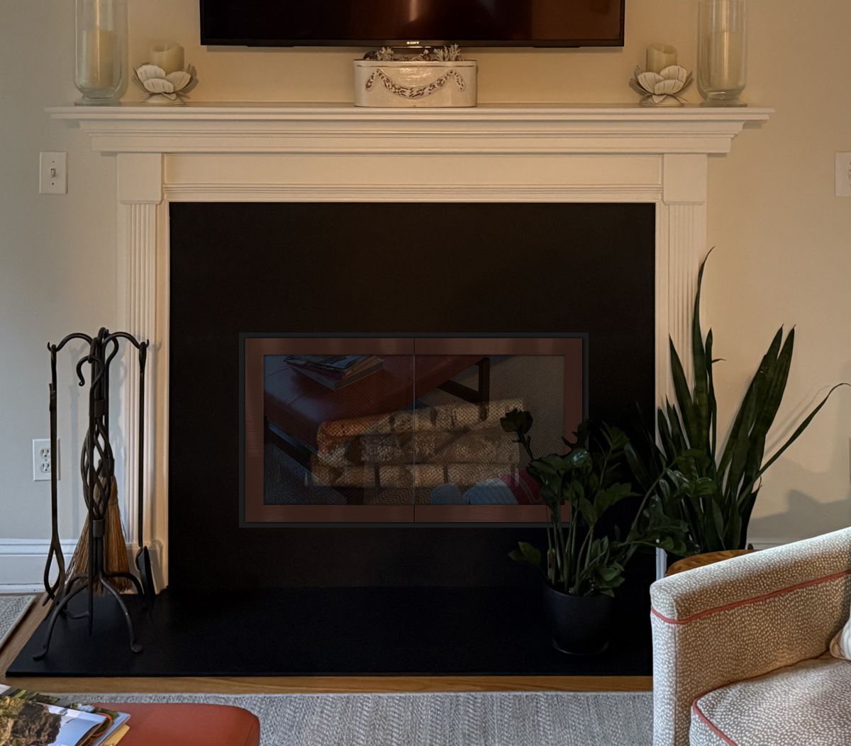 Scale & Finish Disclaimer: Mockups shown on this site are not necessarily to scale and are meant to help you choose the style of your screen or door. The appearance of finishes represented may vary between digital monitors and screens. I do my best to recommend finishes that I believe will blend with your decor and flatter your fireplace. You can view finish options here: