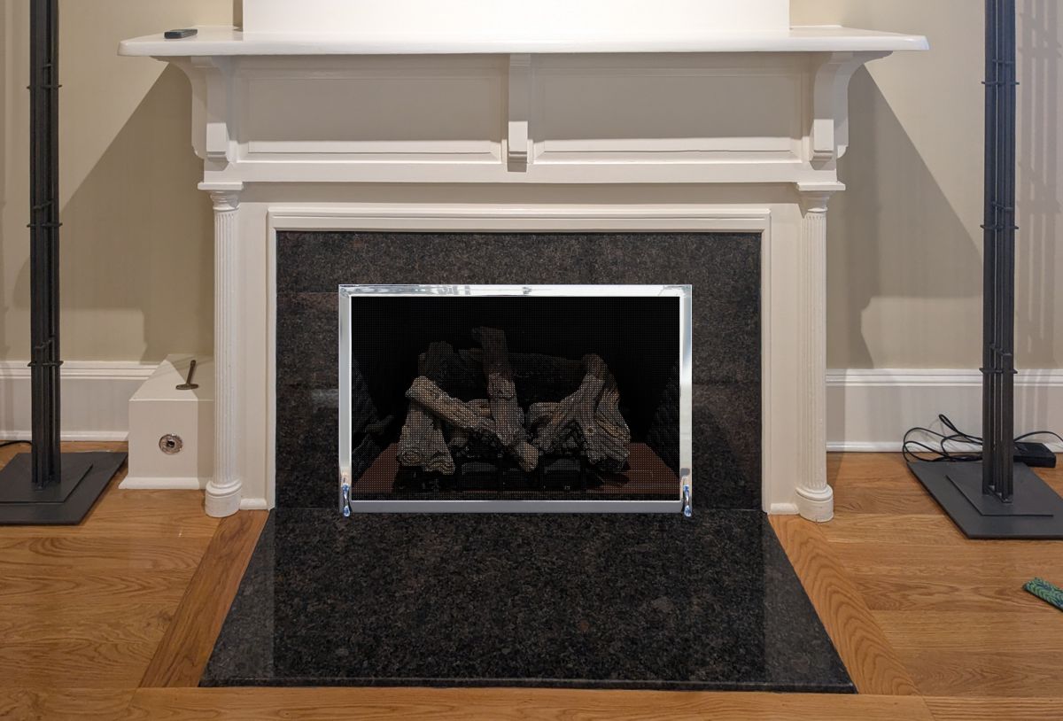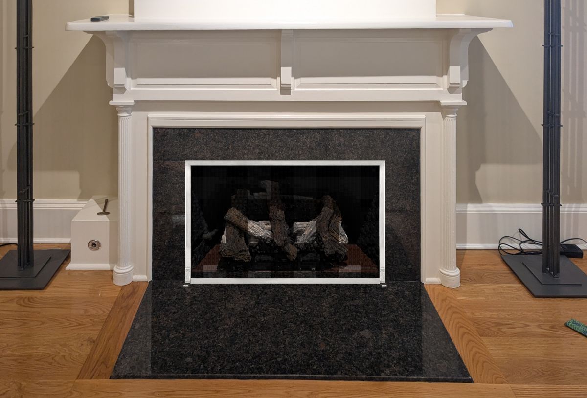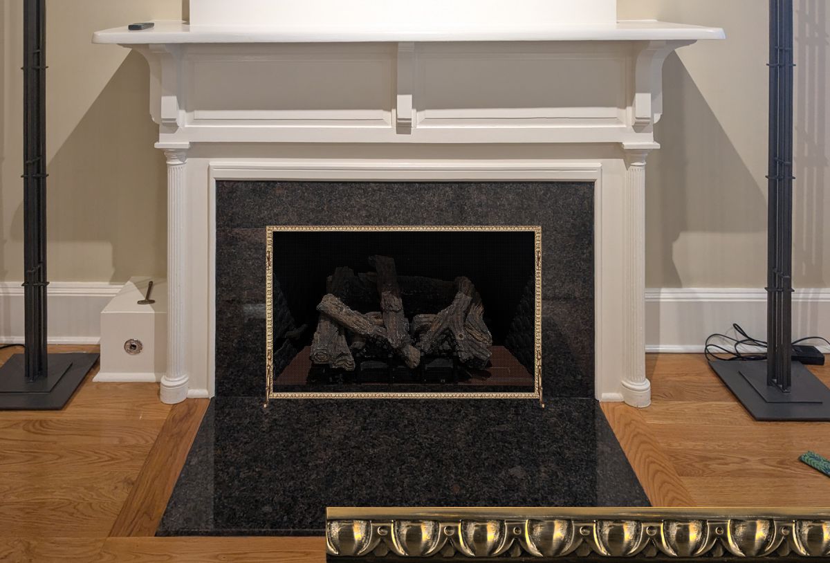 Customer Comments: The customer is interested in a screen for her fireplace that is getting a new ventless gas logset. The room style is traditional New England design in an old hotel that was converted to luxury condos. Please include 5 options for the customer to choose from. Fireplace opening measured at 31 1/4" Width 21 3/8" Height Granite slab: 1 3/8" Thickness