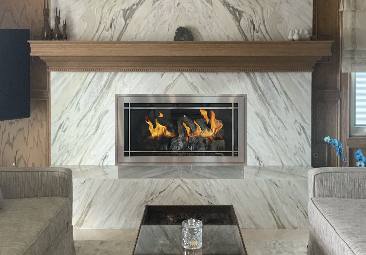 If you are planning on burning anything in your fireplace, you need to have mesh behind the glass so you can burn a fire with the doors open. You can chooe between gate mesh backup doors and sliding mesh curtains. Functionally, gate mesh performs the best as the wire has smaller holes that sparks cannot get through. Aesthetically, mesh curtains may be preferred because they do not have a vertical center frame that obstructs the view of the fire. When you are not using the fire or you want a complete unobstructed view, they do not stick out like gate mesh doors when they are opened.