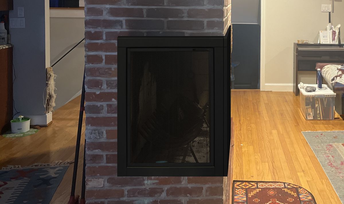If you are planning on burning anything in your fireplace, you need to have mesh behind the glass so you can burn a fire with the doors open. You can chooe between gate mesh backup doors and sliding mesh curtains. Functionally, gate mesh performs the best as the wire has smaller holes that sparks cannot get through. Aesthetically, mesh curtains may be preferred because they do not have a vertical center frame that obstructs the view of the fire. When you are not using the fire or you want a complete unobstructed view, they do not stick out like gate mesh doors when they are opened.