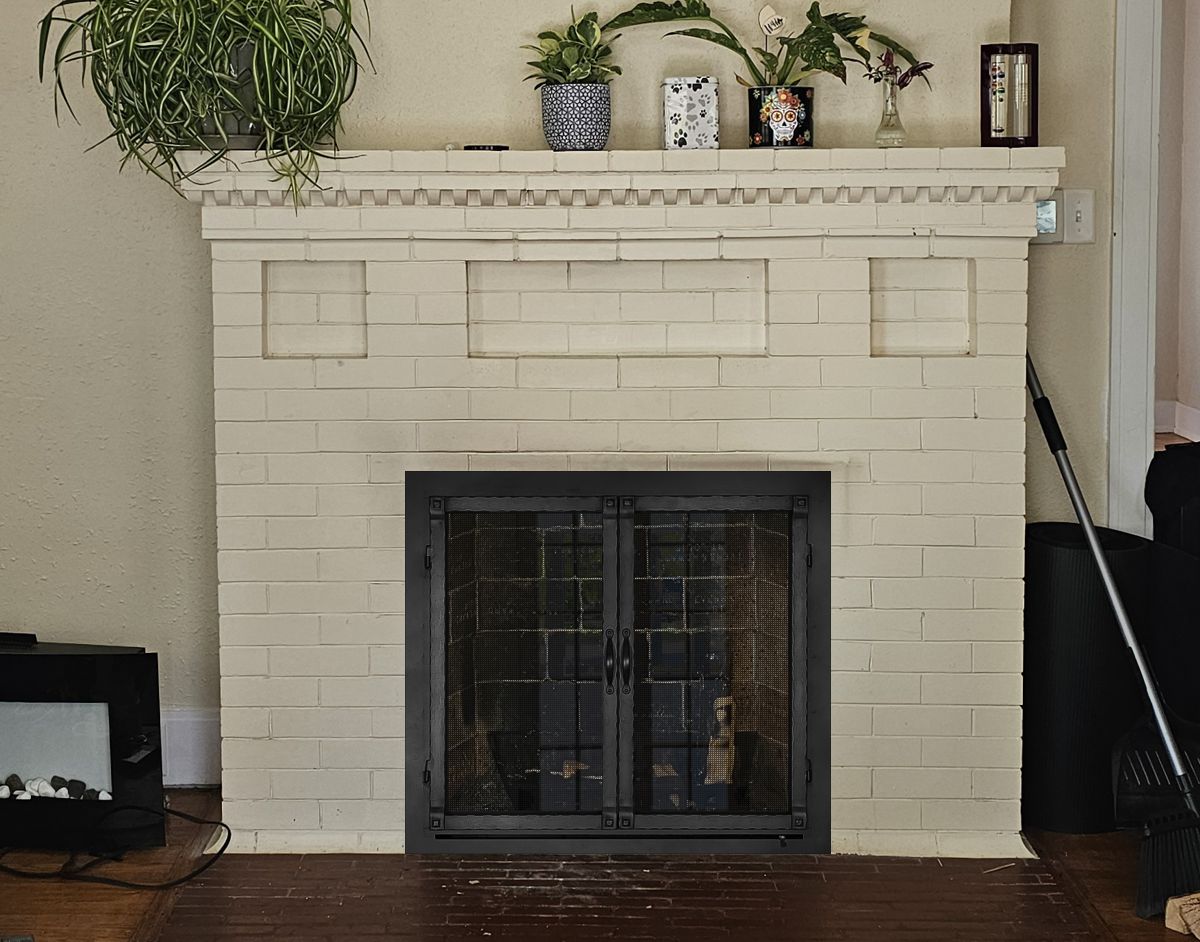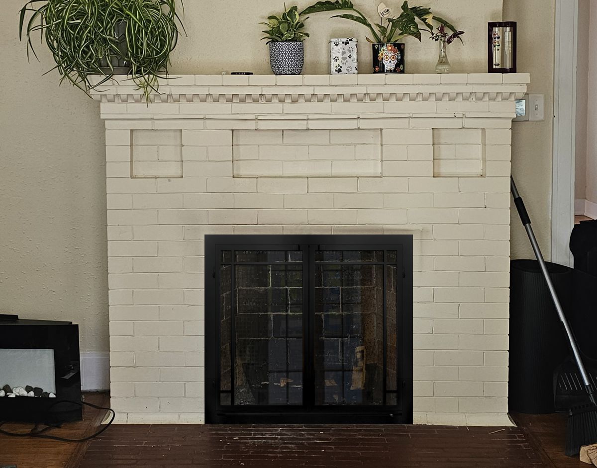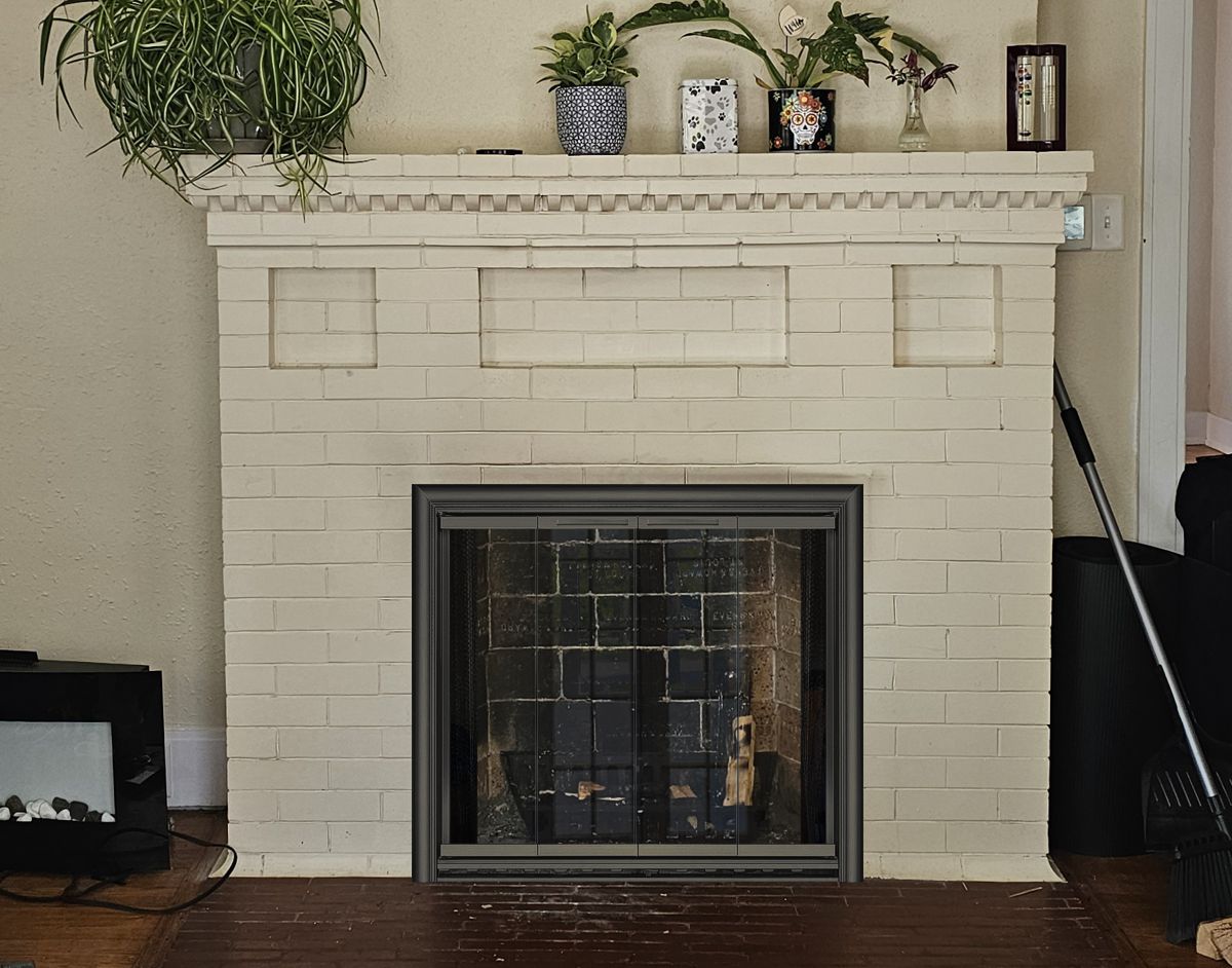 Scale & Finish Disclaimer: Mockups shown on this site are not necessarily to scale and are meant to help you choose the style of your screen or door. The appearance of finishes represented may vary between digital monitors and screens. I do my best to recommend finishes that I believe will blend with your decor and flatter your fireplace. You can view finish options here: