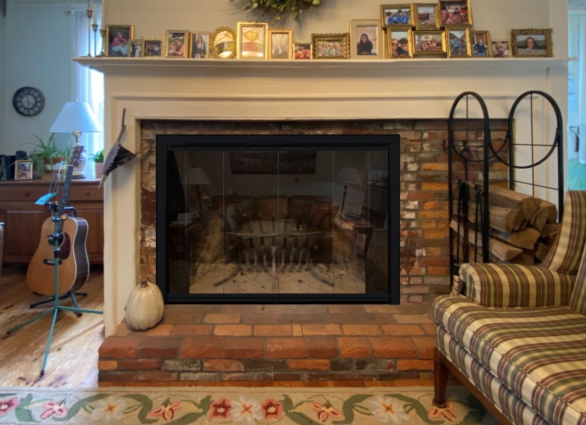 Scale & Finish Disclaimer: Mockups shown on this site are not necessarily to scale and are meant to help you choose the style of your screen or door. The appearance of finishes represented may vary between digital monitors and screens. I do my best to recommend finishes that I believe will blend with your decor and flatter your fireplace. You can view finish options here: