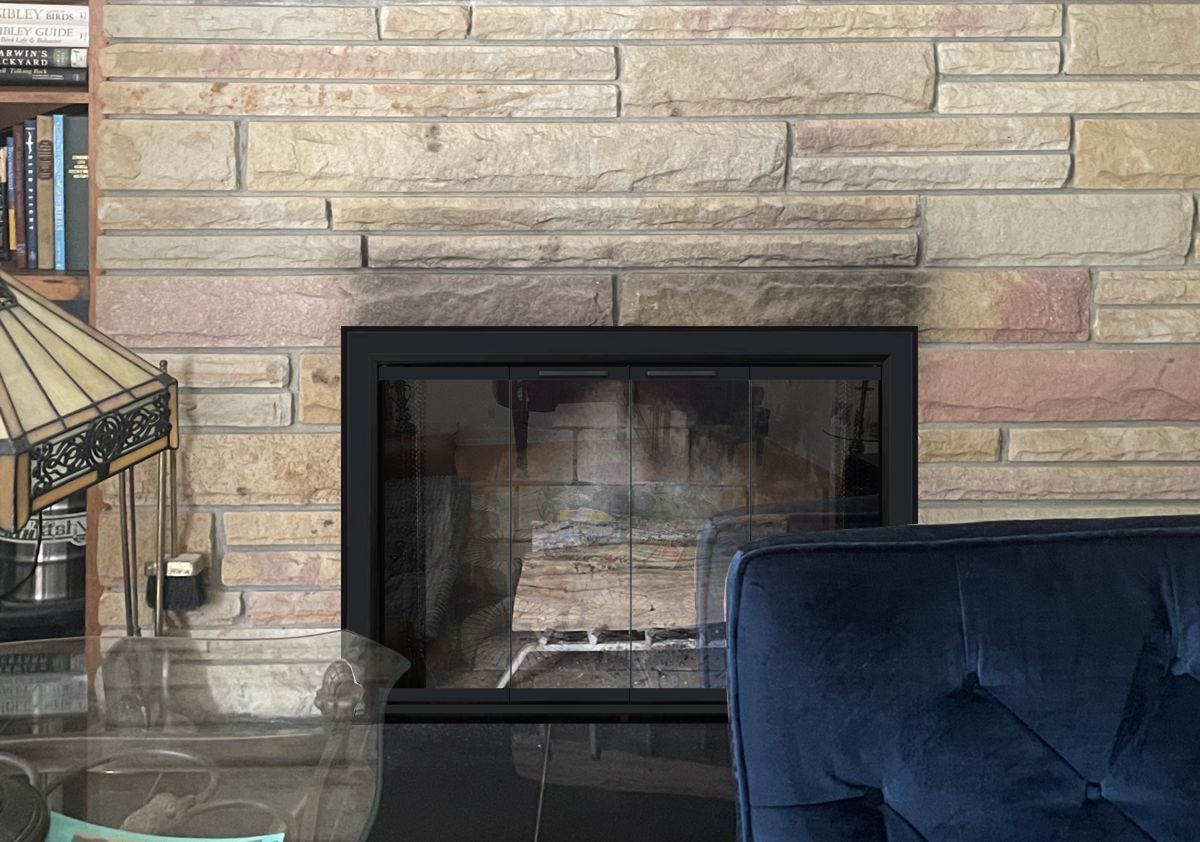 If you are planning on burning anything in your fireplace, you need to have mesh behind the glass so you can burn a fire with the doors open. You can chooe between gate mesh backup doors and sliding mesh curtains. Functionally, gate mesh performs the best as the wire has smaller holes that sparks cannot get through. Aesthetically, mesh curtains may be preferred because they do not have a vertical center frame that obstructs the view of the fire. When you are not using the fire or you want a complete unobstructed view, they do not stick out like gate mesh doors when they are opened.