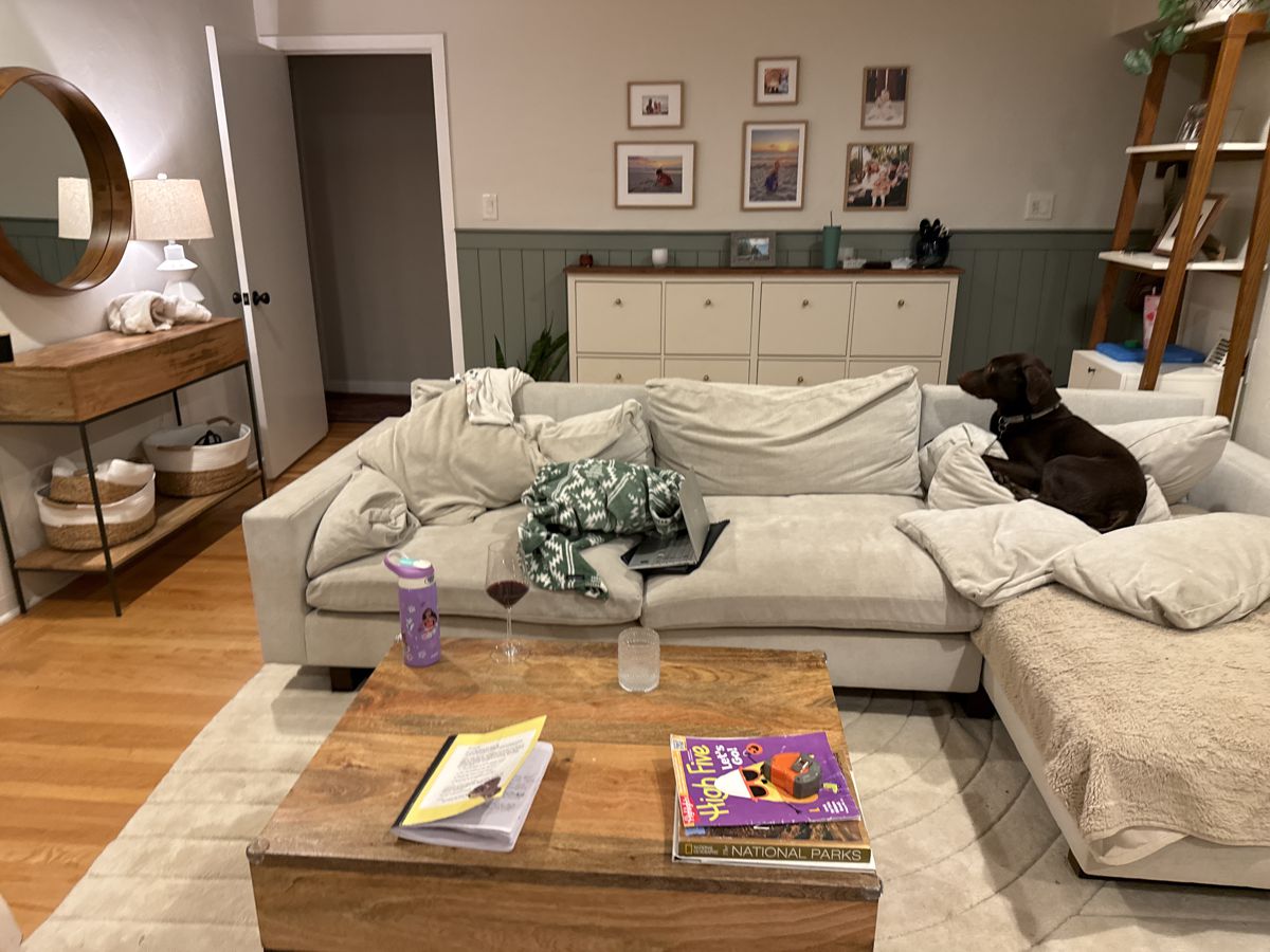 Photo #2: With your back to the fireplace, take a picture looking straight out into the room so we can see the decor directly in front of the fireplace.