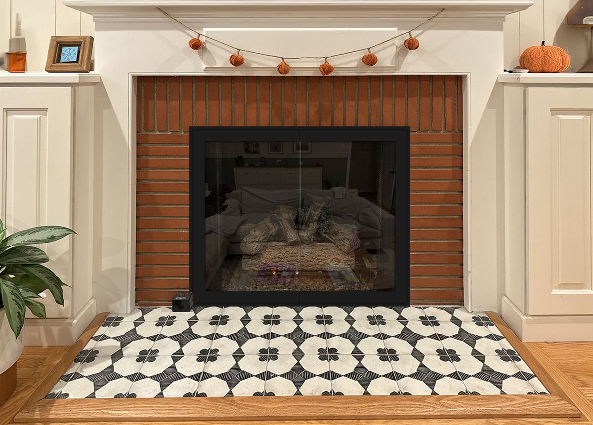 Scale & Finish Disclaimer: Mockups shown on this site are not necessarily to scale and are meant to help you choose the style of your screen or door. The appearance of finishes represented may vary between digital monitors and screens. I do my best to recommend finishes that I believe will blend with your decor and flatter your fireplace. You can view finish options here: