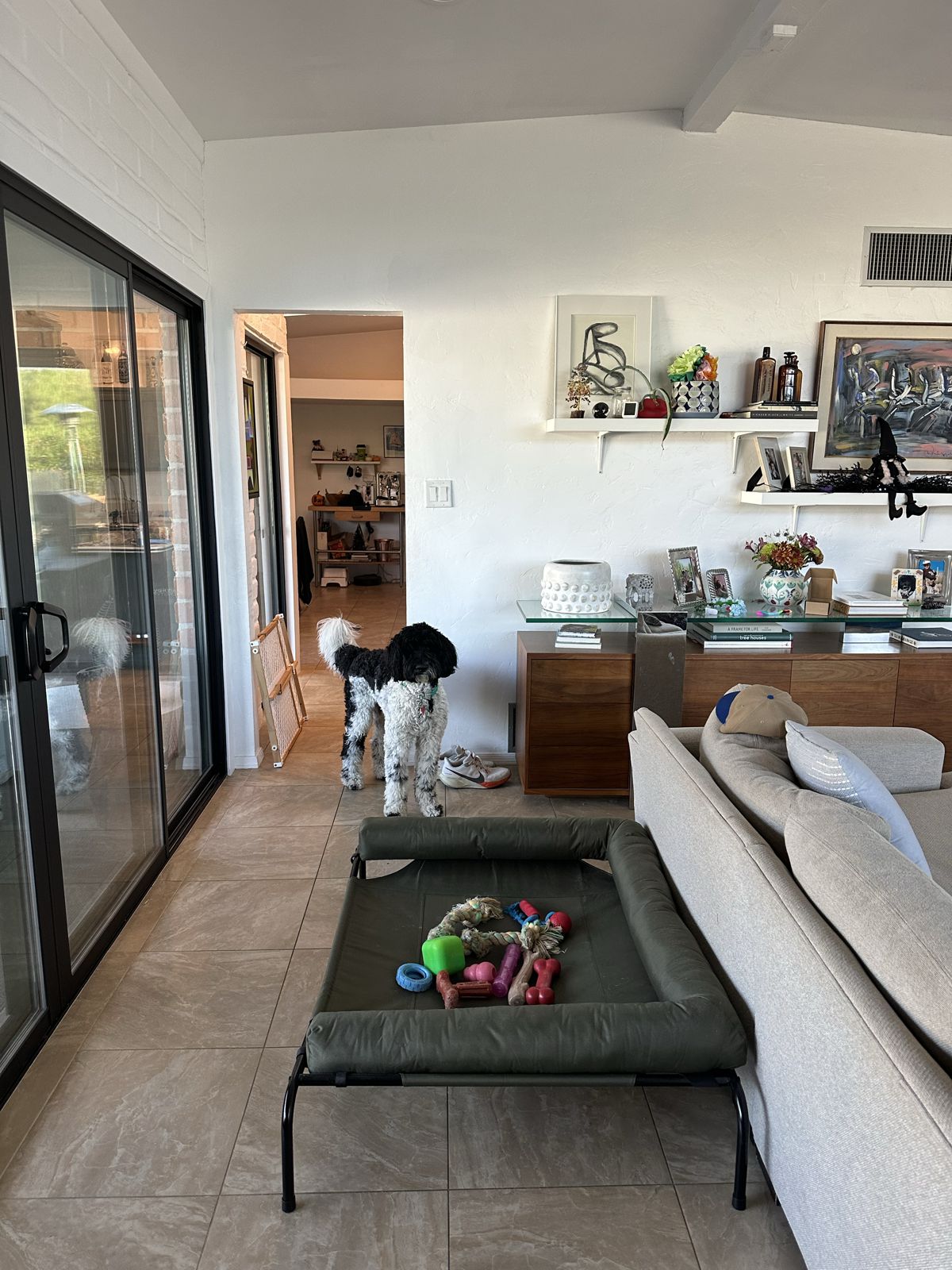 Photo #2: With your back to the fireplace, take a picture looking straight out into the room so we can see the decor directly in front of the fireplace.
