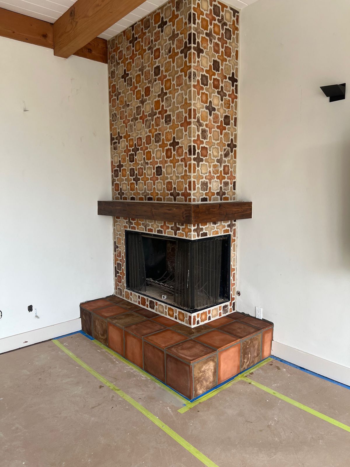 Important Note: This is a prefabricated fireplace framed into the home with wood construction. Fires should be burned with the glass doors open to prevent the fireplace from overheating.