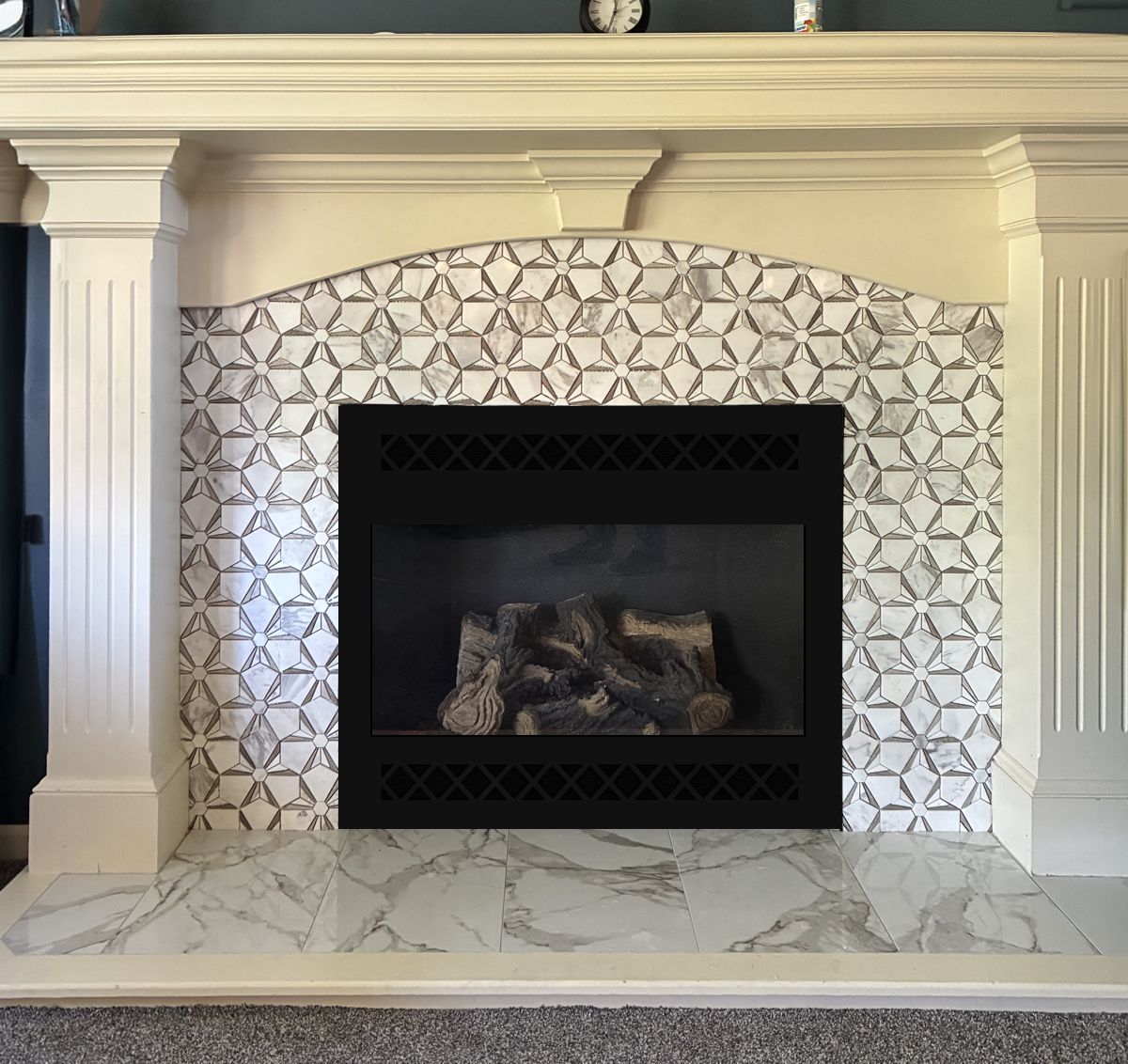 Scale & Finish Disclaimer: Mockups shown on this site are not necessarily to scale and are meant to help you choose the style of your screen or door. The appearance of finishes represented may vary between digital monitors and screens. I do my best to recommend finishes that I believe will blend with your decor and flatter your fireplace. You can view finish options here: