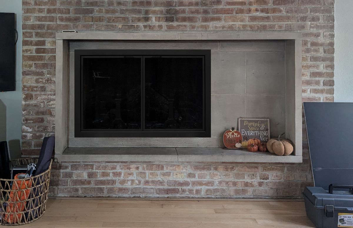 Scale & Finish Disclaimer: Mockups shown on this site are not necessarily to scale and are meant to help you choose the style of your screen or door. The appearance of finishes represented may vary between digital monitors and screens. I do my best to recommend finishes that I believe will blend with your decor and flatter your fireplace. You can view finish options here: