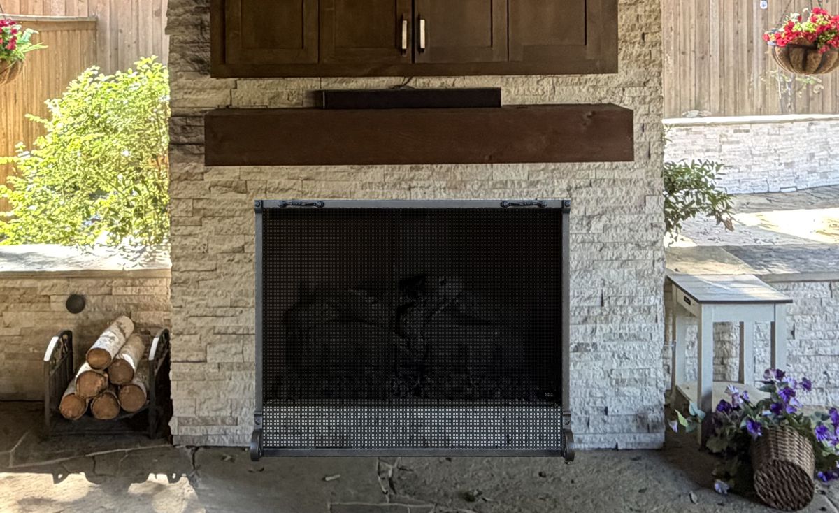 If you are planning on burning anything in your fireplace, you need to have mesh behind the glass so you can burn a fire with the doors open. You can chooe between gate mesh backup doors and sliding mesh curtains. Functionally, gate mesh performs the best as the wire has smaller holes that sparks cannot get through. Aesthetically, mesh curtains may be preferred because they do not have a vertical center frame that obstructs the view of the fire. When you are not using the fire or you want a complete unobstructed view, they do not stick out like gate mesh doors when they are opened.