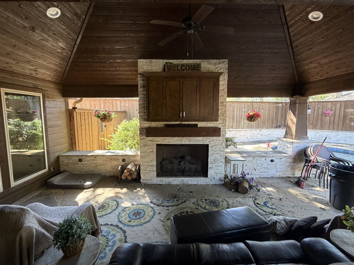 Photo #2: With your back to the fireplace, take a picture looking straight out into the room so we can see the decor directly in front of the fireplace.
