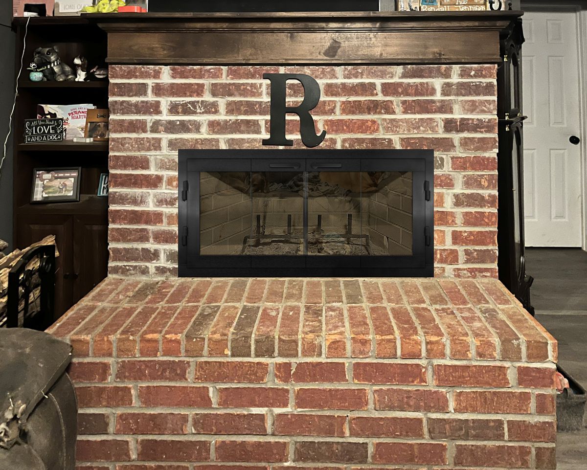 Our Comments: Below are doors that can be made to overlap the bricks covering your zero clearance fireplace. You should burn fires with the glass doors open to prevent the metal fireplace from overheating. I have included options made from various materials and price ranges including aluminum, steel and wrought iron. These are not available in oil rubbed bronze, so I am only showing black. Also, the fireplace is too small for a blower.