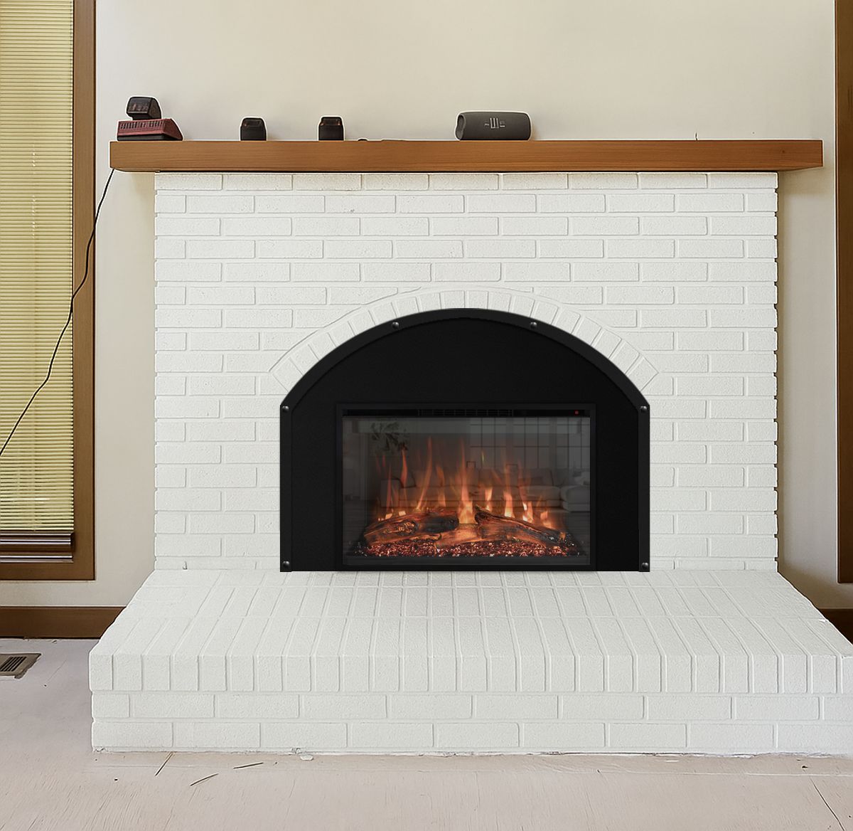 Option #: Modern Flames RS-3021 30" Redstone Electric Fireplace Insert with Plain Custom Arch Surround in Black with Riveted Black Trim.