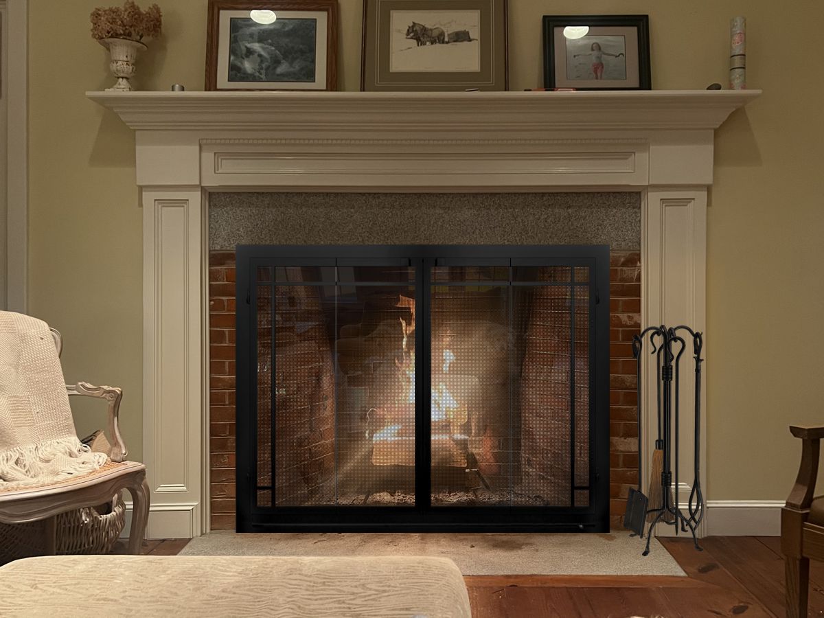 Scale & Finish Disclaimer: Mockups shown on this site are not necessarily to scale and are meant to help you choose the style of your screen or door. The appearance of finishes represented may vary between digital monitors and screens. I do my best to recommend finishes that I believe will blend with your decor and flatter your fireplace. You can view finish options here: