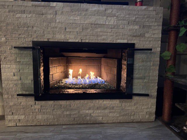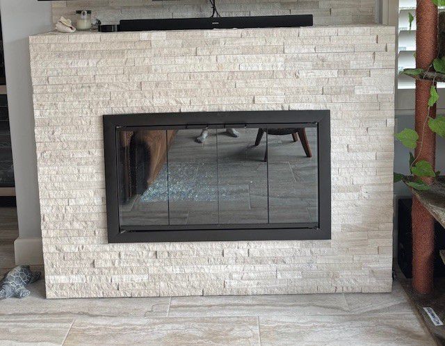 Customer Comments: I have two fireplaces. Primary one has no door or screen and I just need something to keep the new kitten out. It has blue glass. The second one has a standalone screen. If we’re going to done I feel like we should do both and I want something nicer. They should be minimal / modern to go with the house.