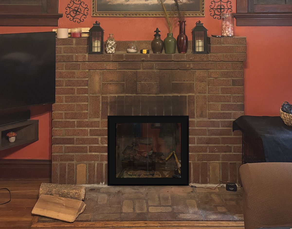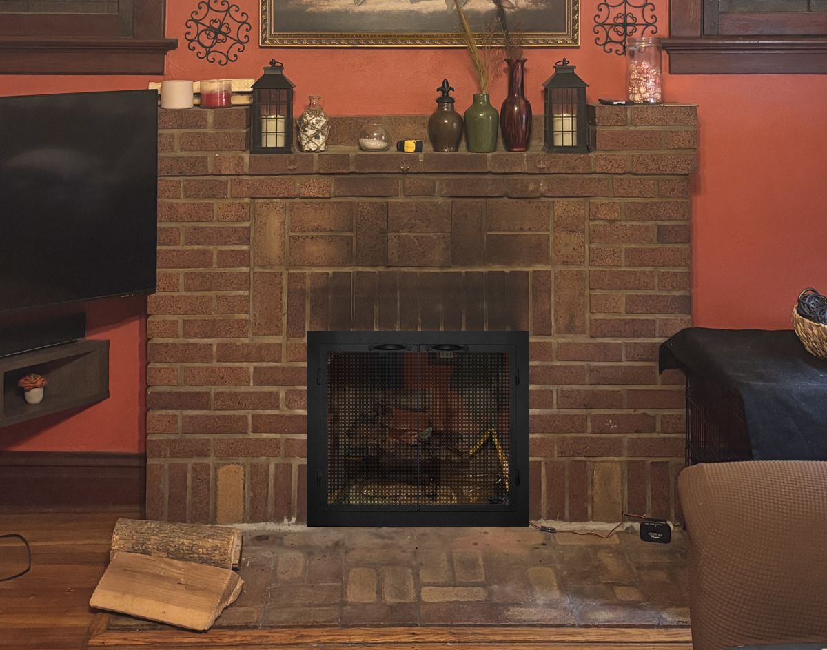 Scale & Finish Disclaimer: Mockups shown on this site are not necessarily to scale and are meant to help you choose the style of your screen or door. The appearance of finishes represented may vary between digital monitors and screens. I do my best to recommend finishes that I believe will blend with your decor and flatter your fireplace. You can view finish options here: