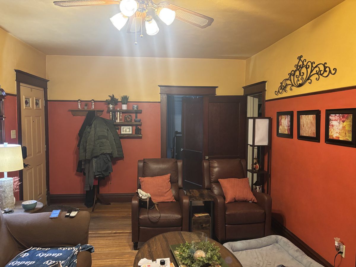 Photo #2: With your back to the fireplace, take a picture looking straight out into the room so we can see the decor directly in front of the fireplace.