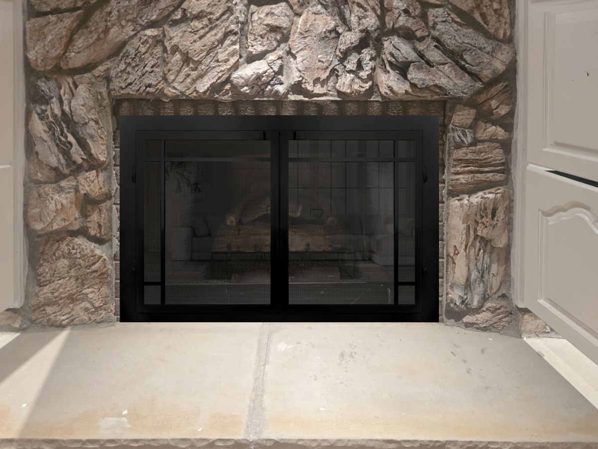 Scale & Finish Disclaimer: Mockups shown on this site are not necessarily to scale and are meant to help you choose the style of your screen or door. The appearance of finishes represented may vary between digital monitors and screens. I do my best to recommend finishes that I believe will blend with your decor and flatter your fireplace. You can view finish options here: