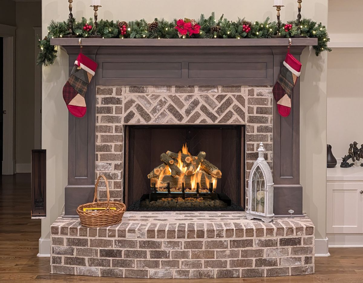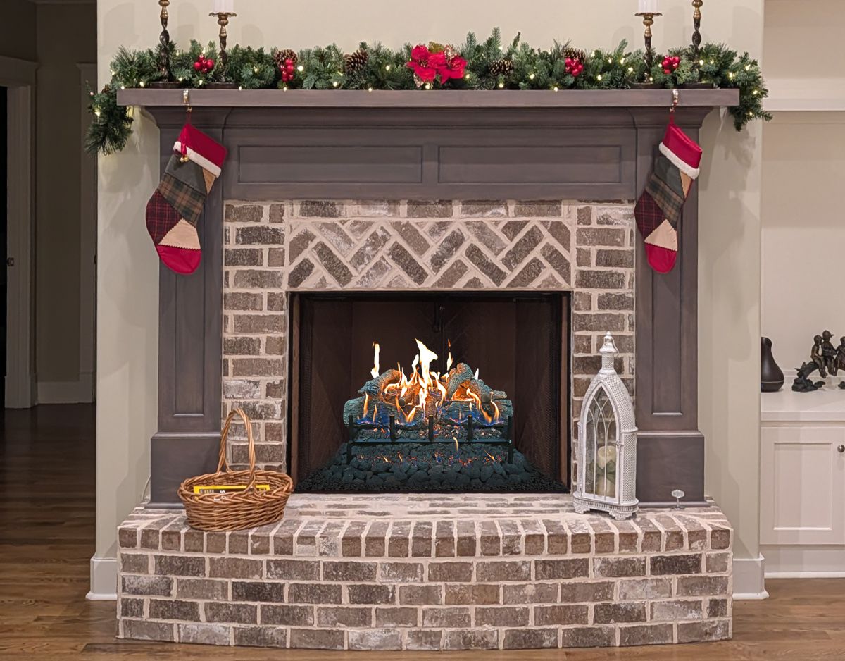 Our Comments: Your fireplace will need 24" logs. Below are all of the vented gas logs from Grand Canyon to consider. If you choose a remote control, there is a black pilot box on the right side and a receiver on the left side. I suggest adding andirons to help hide these components and create a beautiful finished look. I have included some closeup special andirons that I just happen to have in an Oil Rubbed Bronze finish that will compliment your mantel prefectly. However, these are in very limited supply, so you will need to grab the ones you like right away.