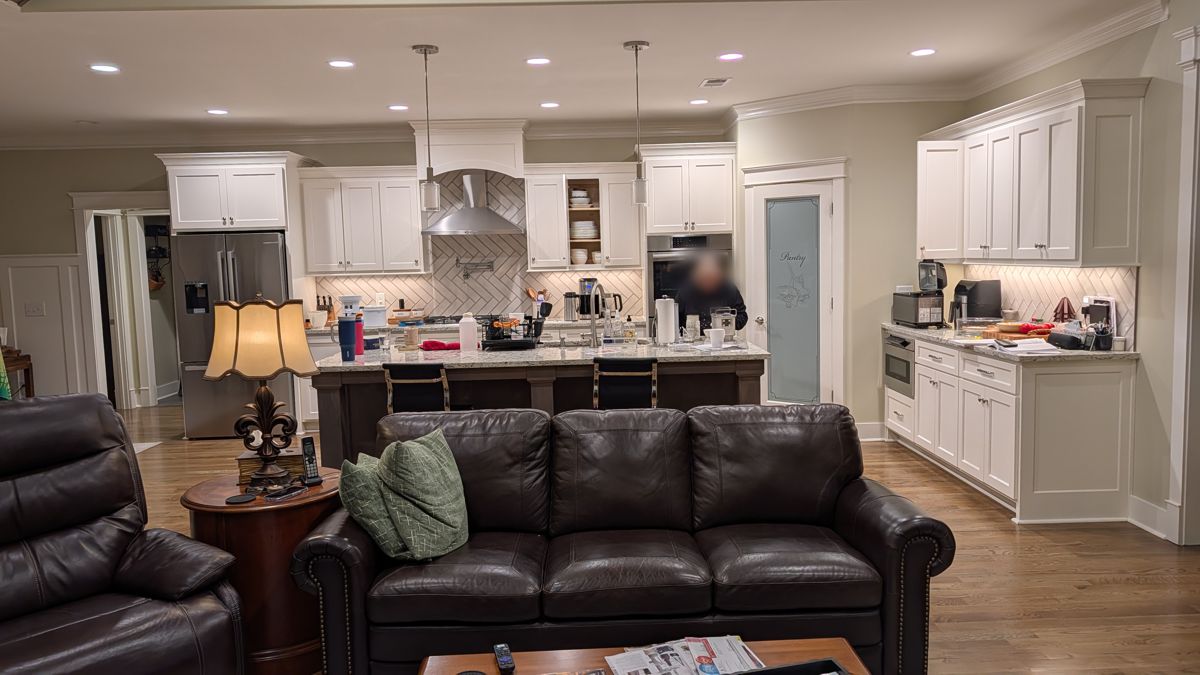 Photo #2: With your back to the fireplace, take a picture looking straight out into the room so we can see the decor directly in front of the fireplace.