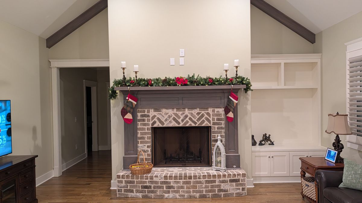 Photo #1: With your camera sideways, take a picture directly in front of the fireplace from far enough away to see the entire fireplace floor to ceiling like this.
