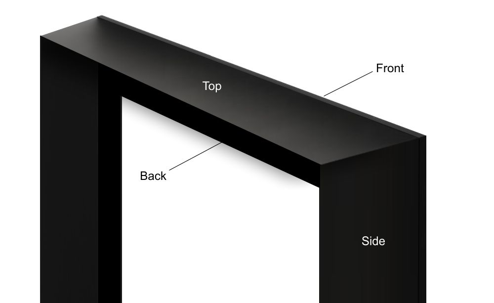 Shown Above: Frame Returns on back side of fireplace door. This allows the door to extend out past the stone opening to sit on top of the Airculator. Half of the frame would stick out of the opening while the other half fits inside the stones to allow mortar to fill the gaps.