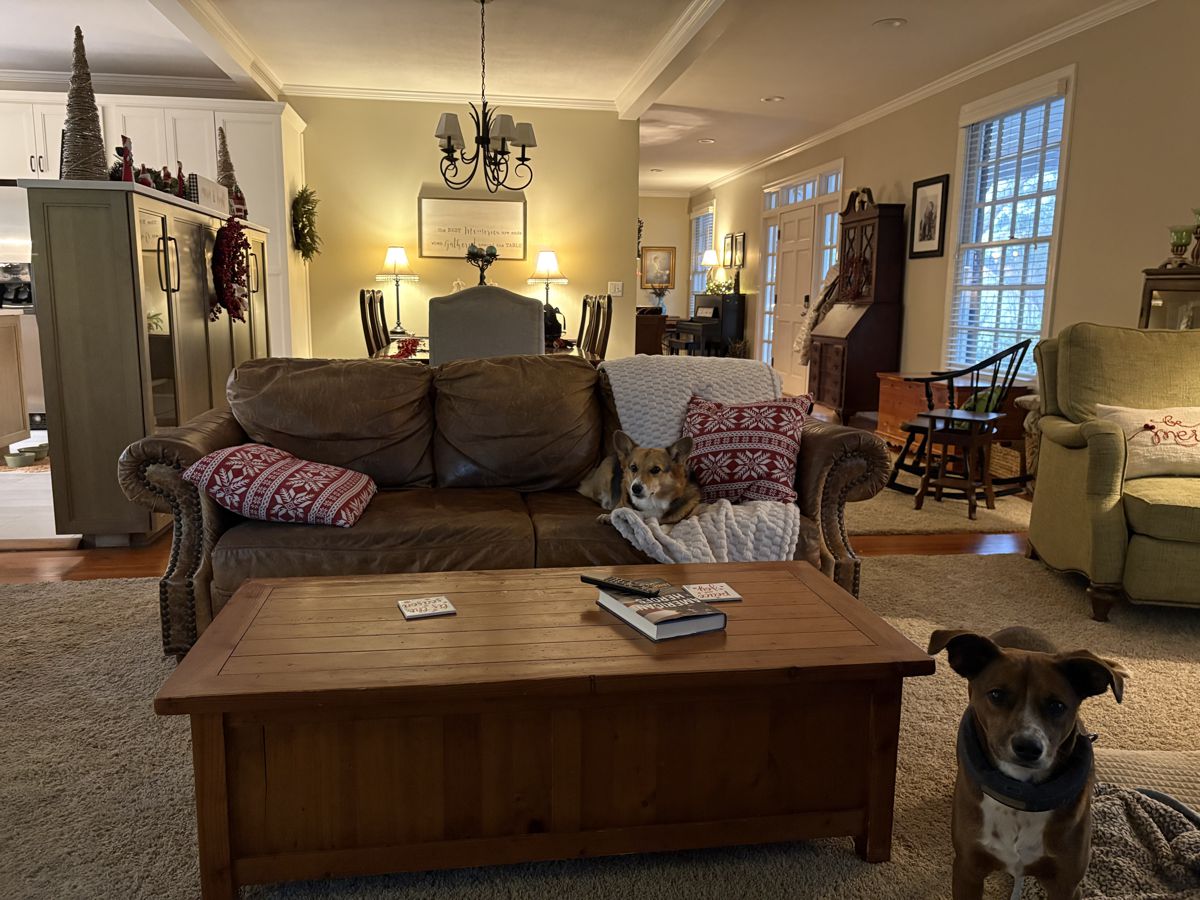Photo #2: With your back to the fireplace, take a picture looking straight out into the room so we can see the decor directly in front of the fireplace.