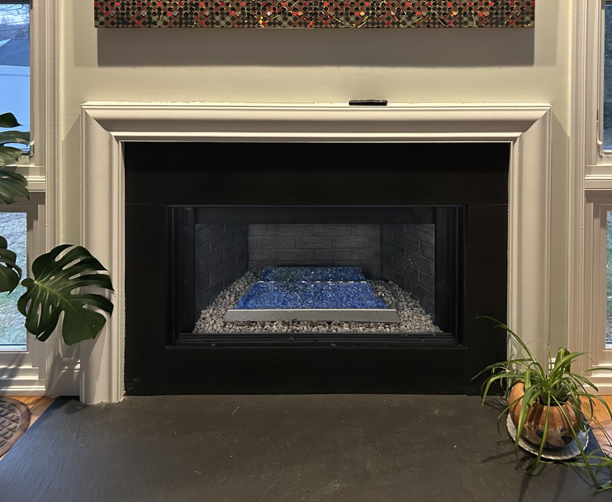 Customer Comments: I am happy with my blue glass stone fire place. I would like to get glass doors to the 22x42.5 inch opening. I would like simple black around clear glass.