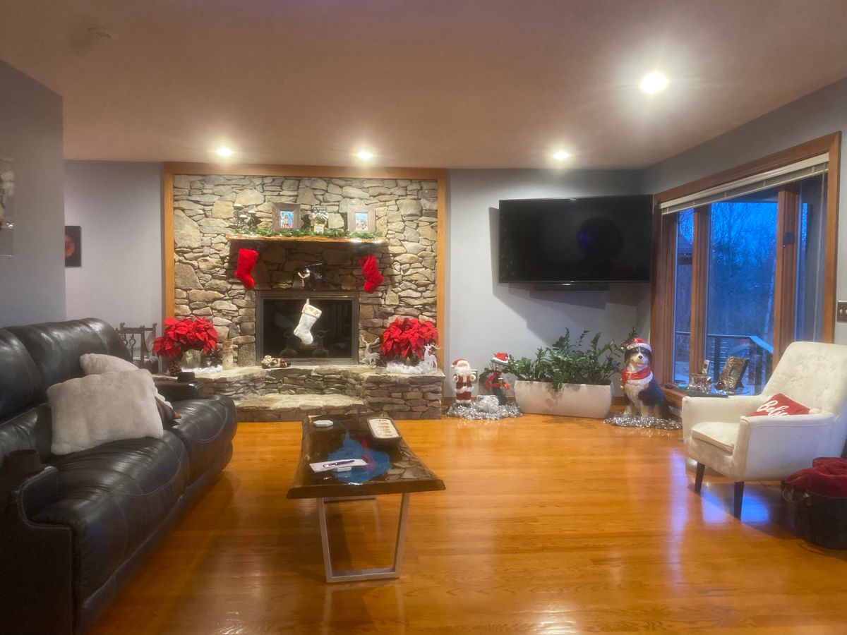Photo #2: With your back to the fireplace, take a picture looking straight out into the room so we can see the decor directly in front of the fireplace.