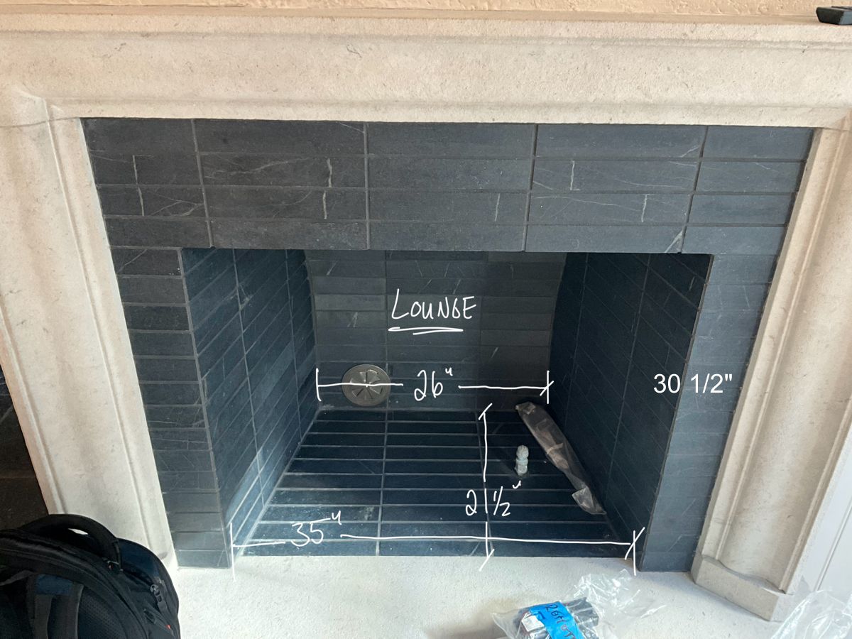 Fireplace Opening: 35" W (Front) x 26" W (Back) x 30 1/2" H x 21 1/2" D