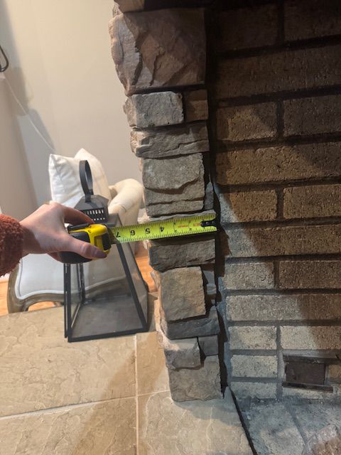 The fireplace measurements are below. The measurements for the top of the fireplace where the stone facing abuts the lintel bar are included in the photos. I drew a picture with measurements and the photo is called "unnamed". If you have questions please let me know.