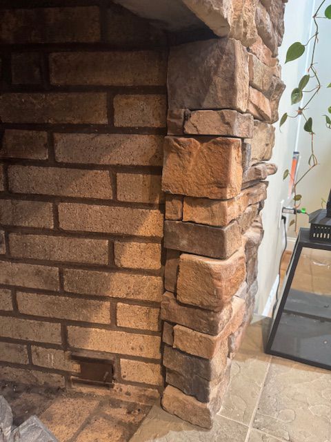 I *think* our fireplace has an irregular stone facing with a lowered hearth. I have included a ton of pictures of our fireplace (inside and outside) and the living room. I also added a couple photos of some modern glass doors I found online that I like the look of made by Design Specialties. I like a clean, simple, modern look. I'm leaning towards a black or dark brown finish but honestly I am open to suggestions. I don't usually like extremely shiny materials. Brushed is more my style.