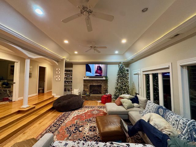 Photo #2: With your back to the fireplace, take a picture looking straight out into the room so we can see the decor directly in front of the fireplace.