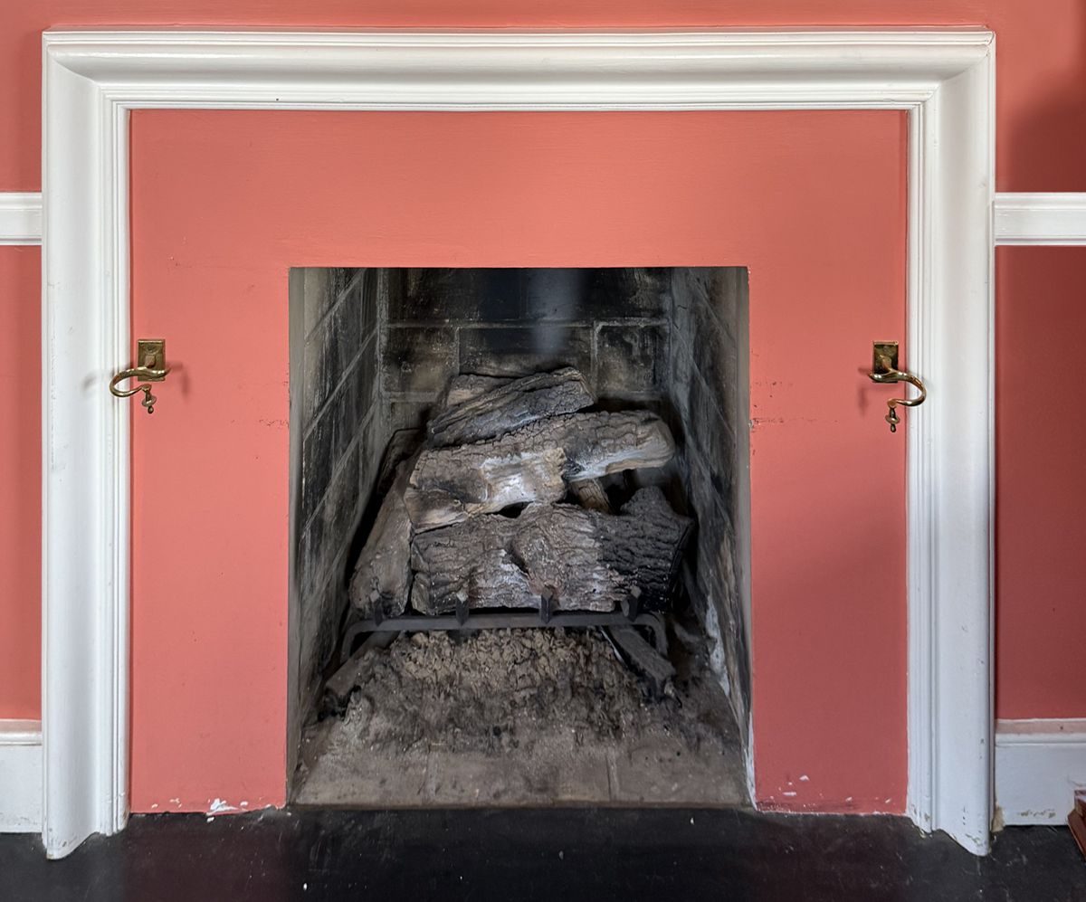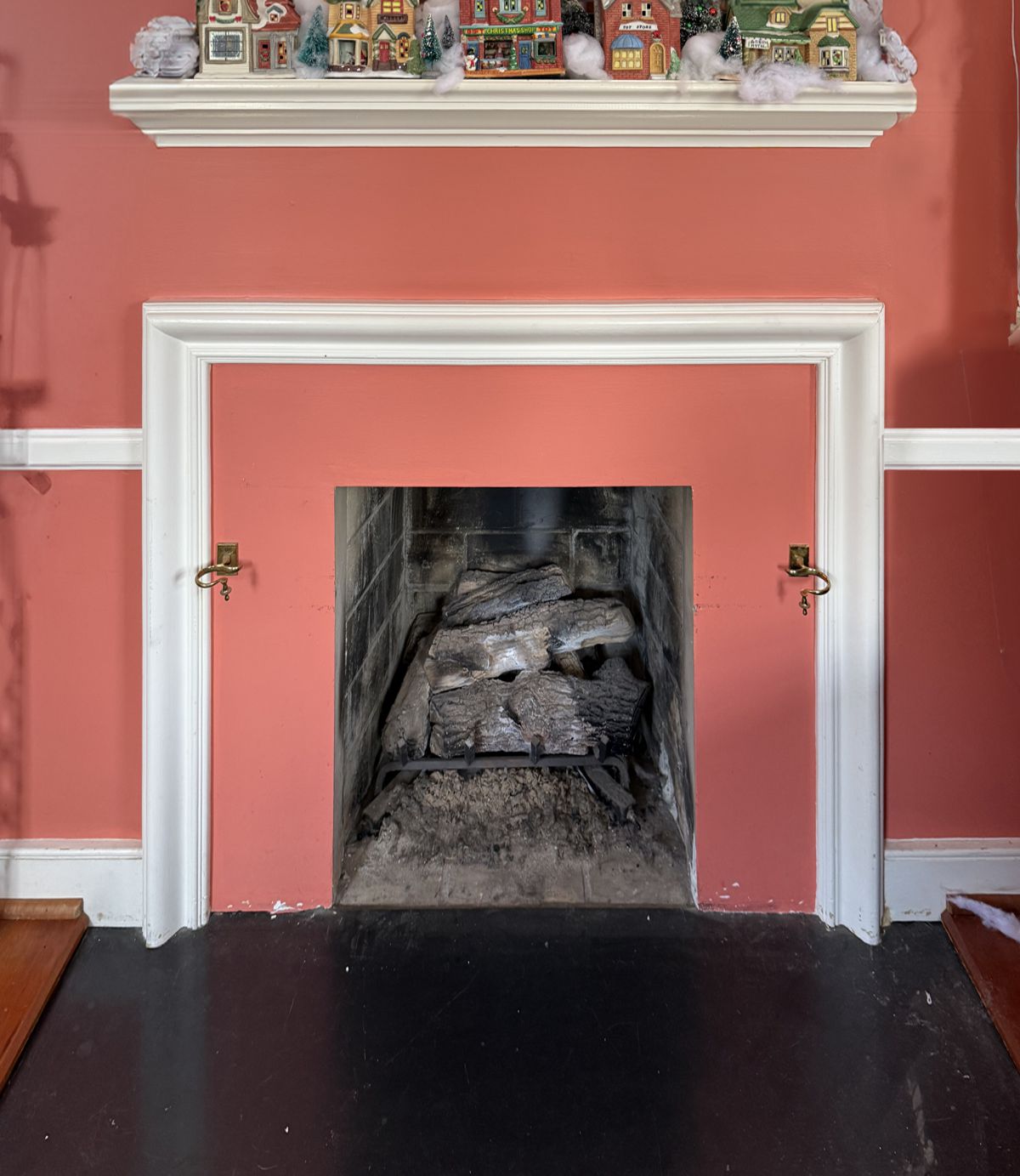 Although glass doors must be open when burning gas logs, they can be closed when the fire is not burning. This is particularly important with gas logs, since the damper is required to be propped open permanently when gas logs are installed. Glass doors help reduce the draft that comes in and out of the chimney year-around. Small fireplaces like this can have a single gate mesh backup door behind the glass for protection with an unobstructed view of the fire when the logs are burning and the doors are open.