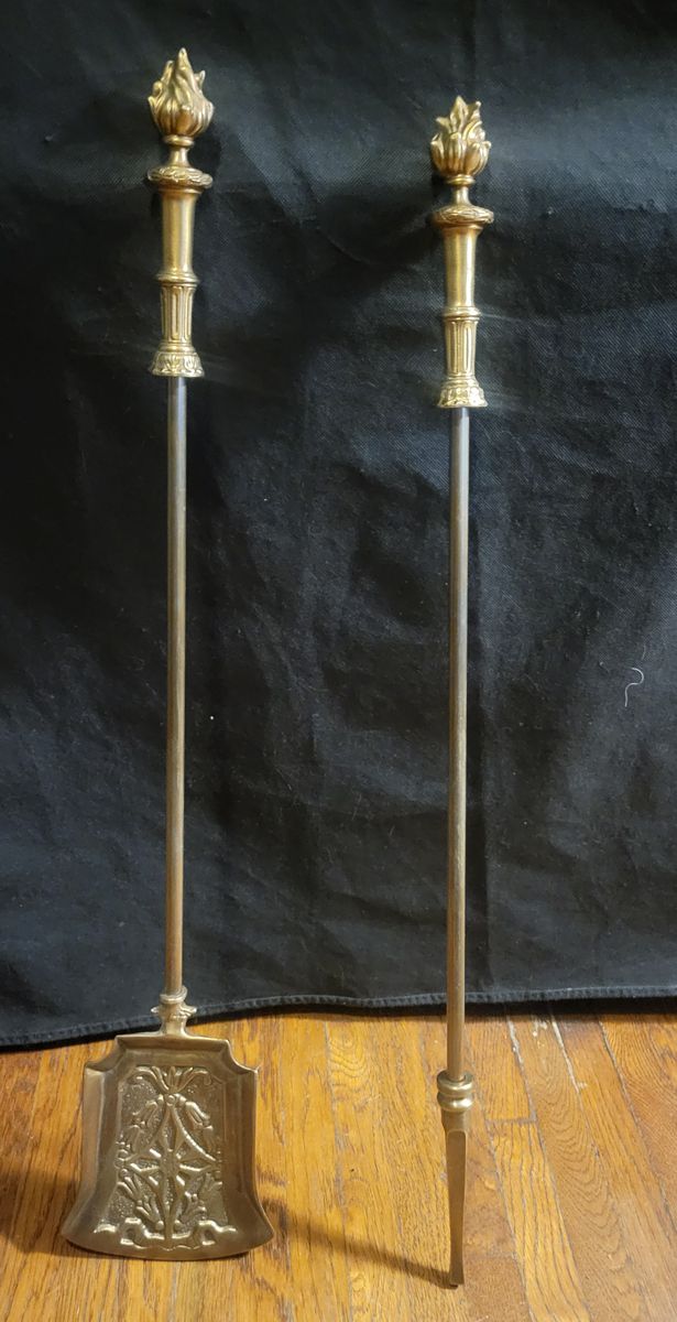 This special poker and shovel is an Antique Reproduction set that was made specifically for use with jam hooks just like the ones you have. These are prefect for your fireplace and I only have the one pair. The company that made these (Stone Manufacturing) no longer exists, so they are a rare find. These are not brand new and have an aged look to them just like the original tools.