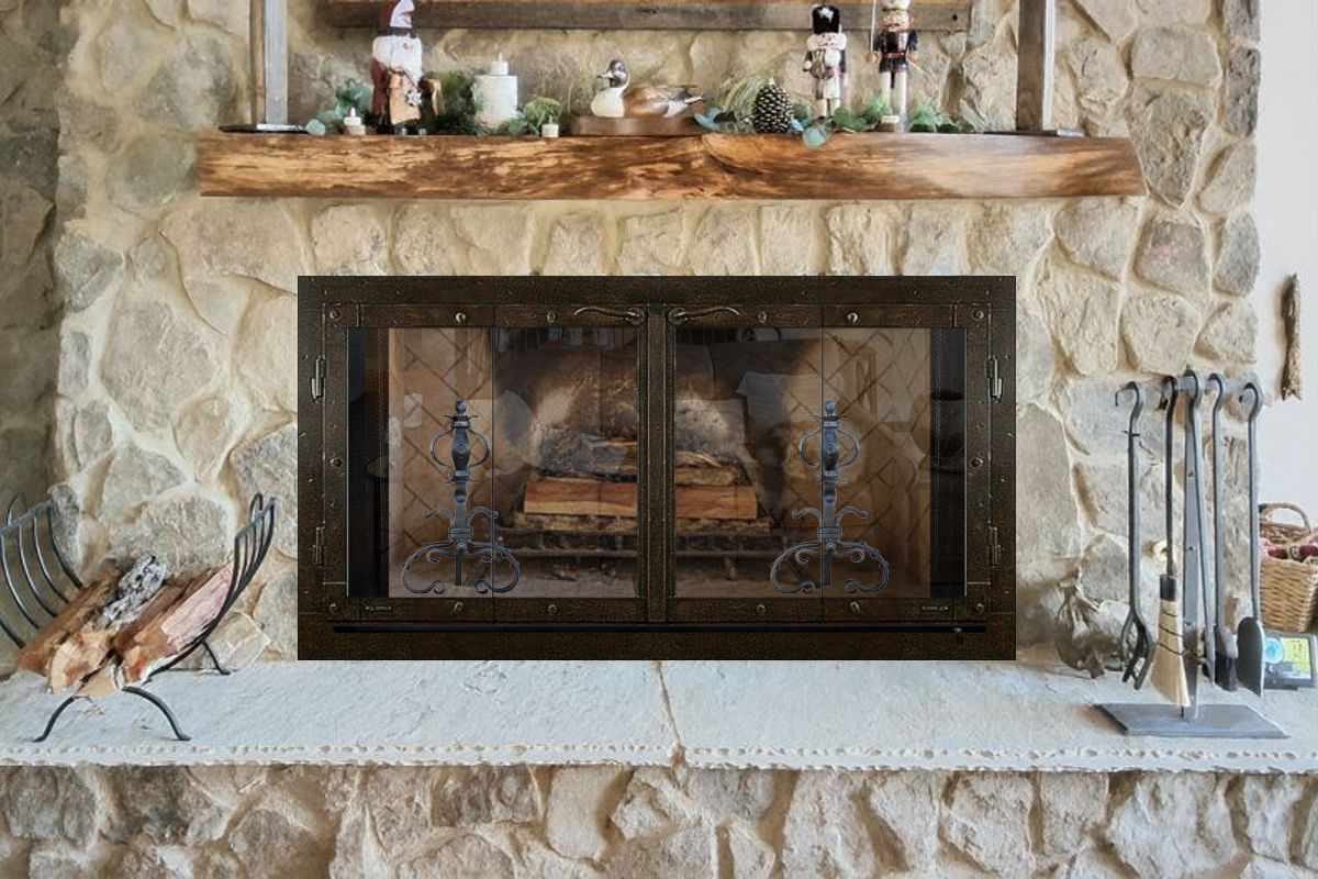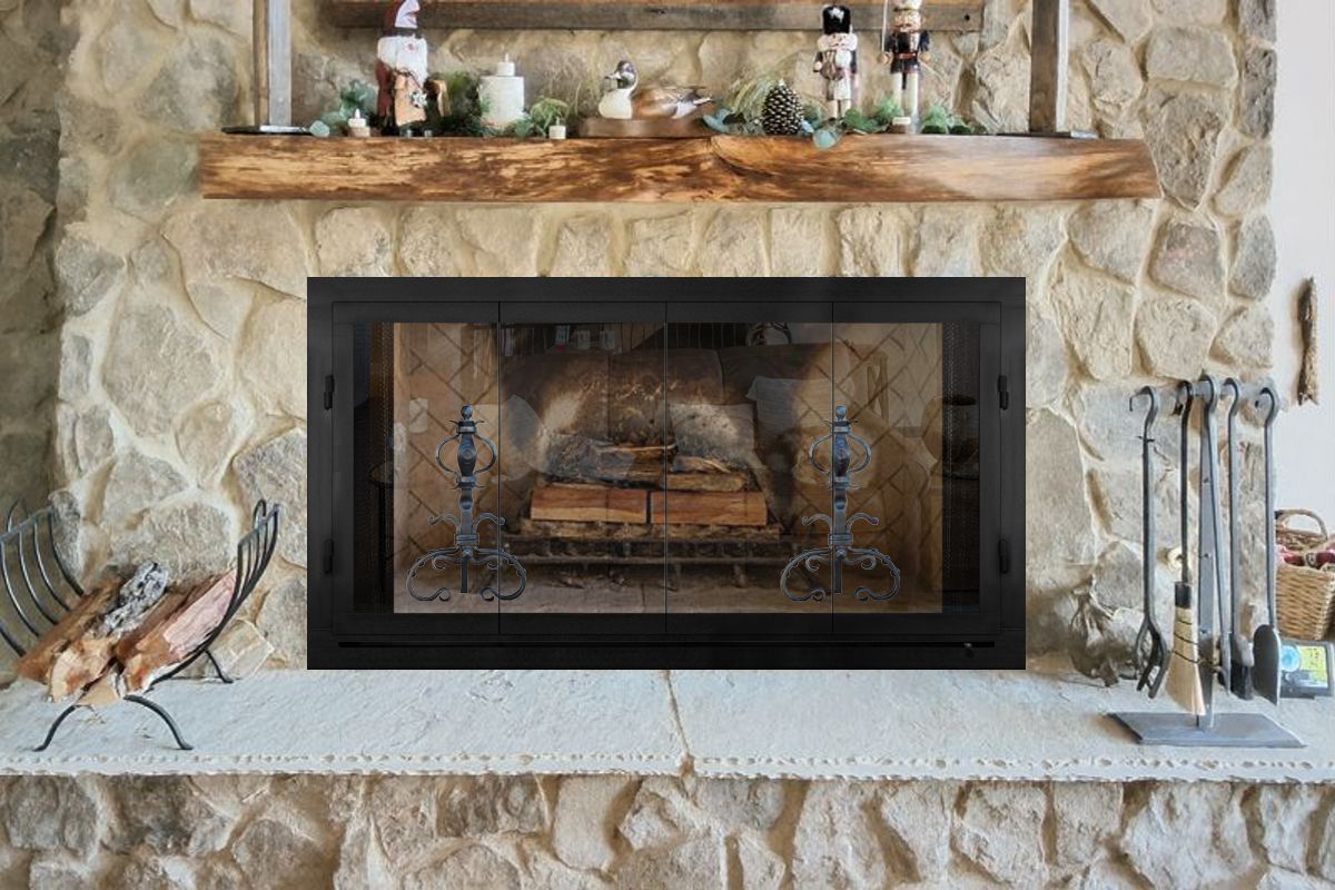 Our Comments: I have selected doors made from a variety of materials and price ranges. I highly recommend the wrought iron doors with ceramic glass for this application as they are the most heavy duty, fit the style and can be burned with doors open or closed.