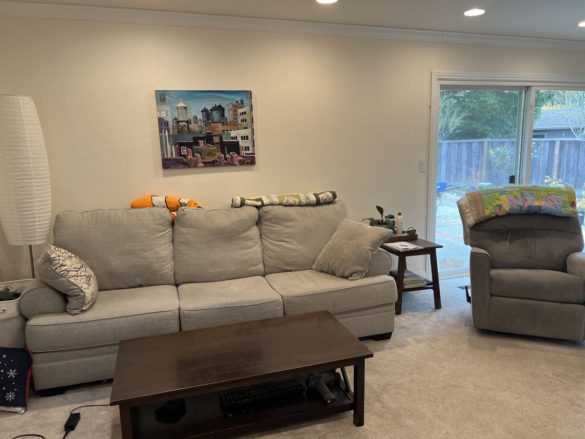 Photo #2: With your back to the fireplace, take a picture looking straight out into the room so we can see the decor directly in front of the fireplace.