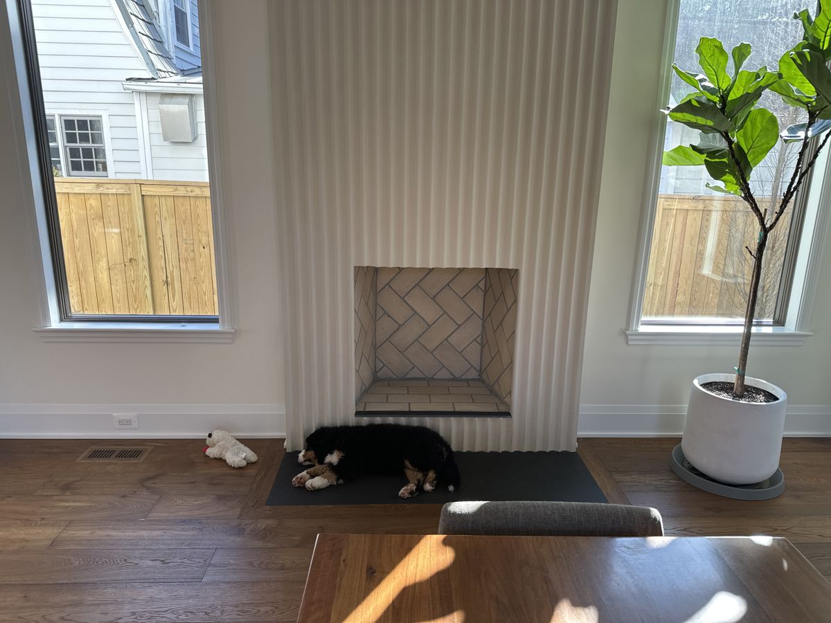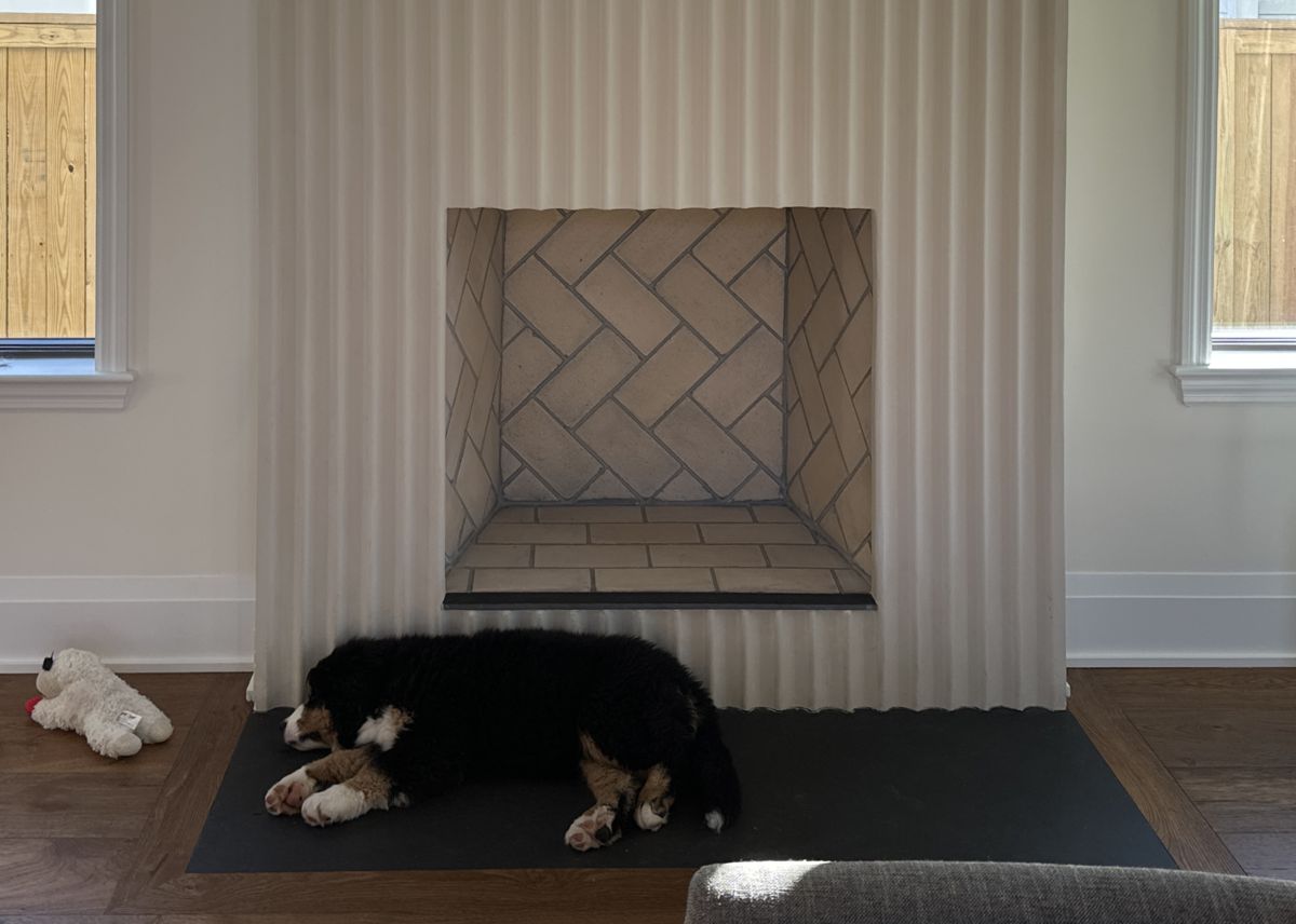 Customer Comments: We have a floating fireplace that’s six or so inches off the ground and framed by a painted plaster fireplace design. We would like something that would look nice in that space and be easy to use. One concern is that if the plaster gets bumped a lot the paint could chip, which would look bad. Interested in your thoughts! The fireplace box is one of those prefab isokerns. Design should be clean / not ornate.