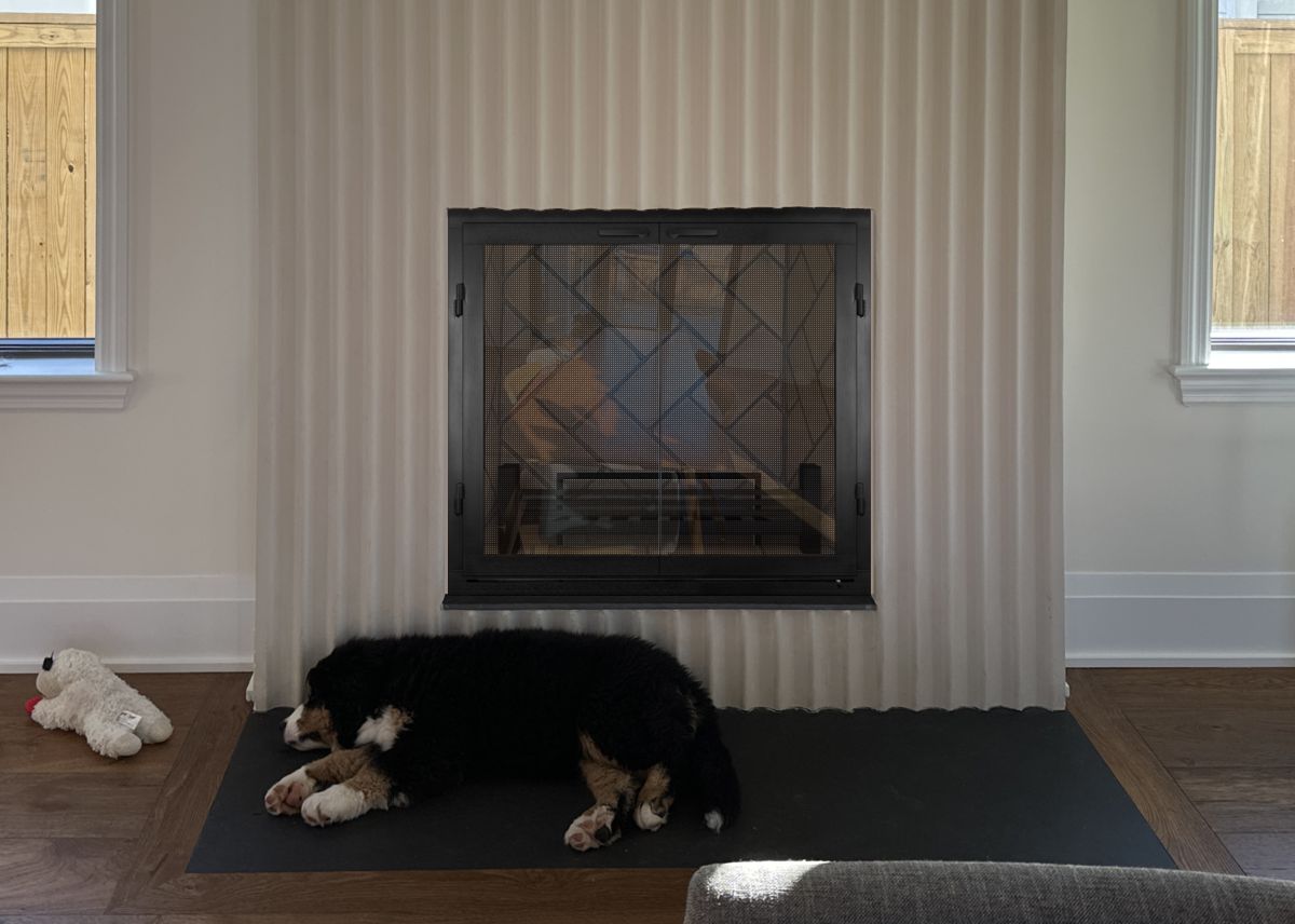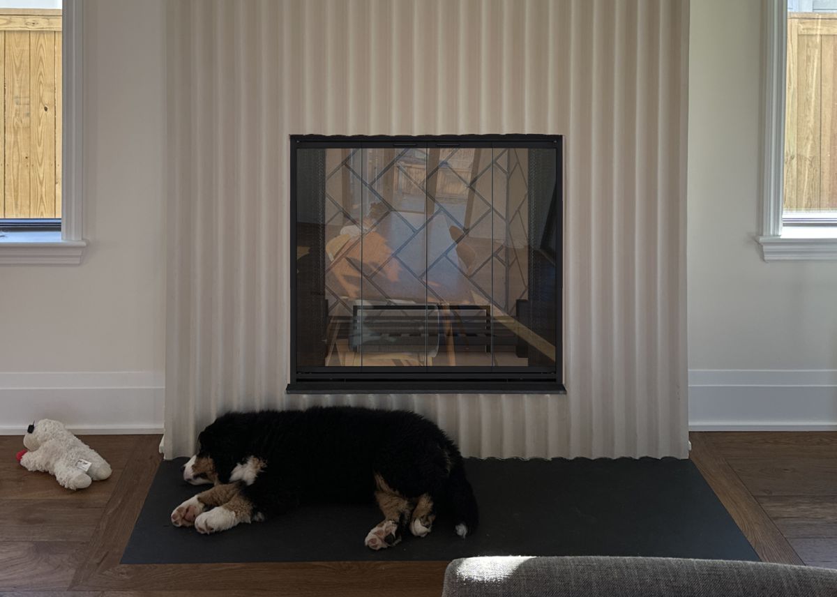 If you are planning on burning anything in your fireplace, you need to have mesh behind the glass so you can burn a fire with the doors open. You can chooe between gate mesh backup doors and sliding mesh curtains. Functionally, gate mesh performs the best as the wire has smaller holes that sparks cannot get through. Aesthetically, mesh curtains may be preferred because they do not have a vertical center frame that obstructs the view of the fire. When you are not using the fire or you want a complete unobstructed view, they do not stick out like gate mesh doors when they are opened.