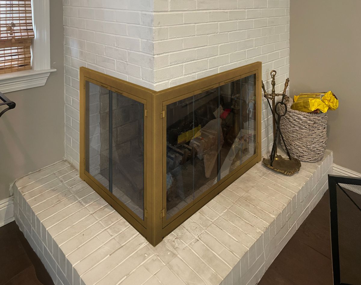 Customer Comments: Good afternoon, I am interested in a quote on options for my corner fireplace. I would like to either use a mesh screen, enclose with glass or have doors on it. Please let me know what option I would have. I’m including photos below. Please pardon my fur baby in the photo. :)