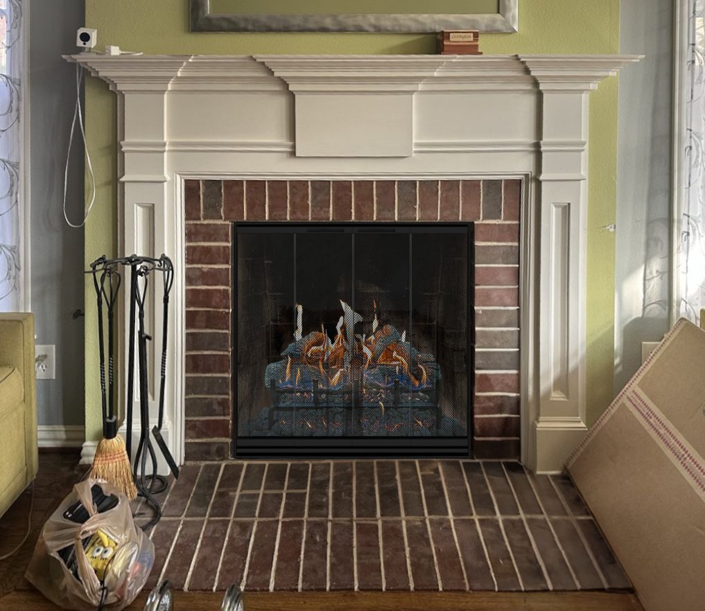 Scale & Finish Disclaimer: Mockups shown on this site are not necessarily to scale and are meant to help you choose the style of your screen or door. The appearance of finishes represented may vary between digital monitors and screens. I do my best to recommend finishes that I believe will blend with your decor and flatter your fireplace. You can view finish options here: