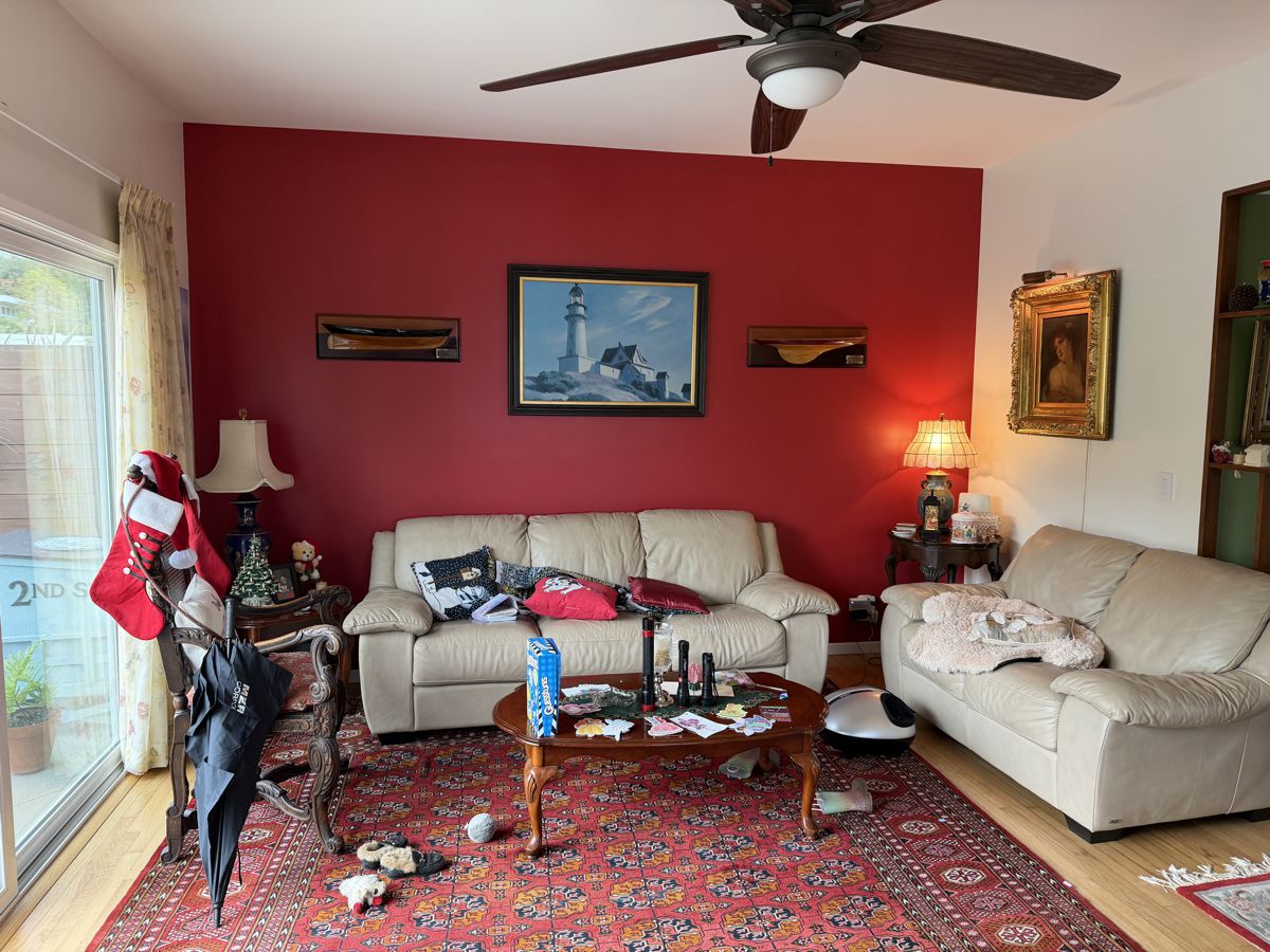 Photo #2: With your back to the fireplace, take a picture looking straight out into the room so we can see the decor directly in front of the fireplace.