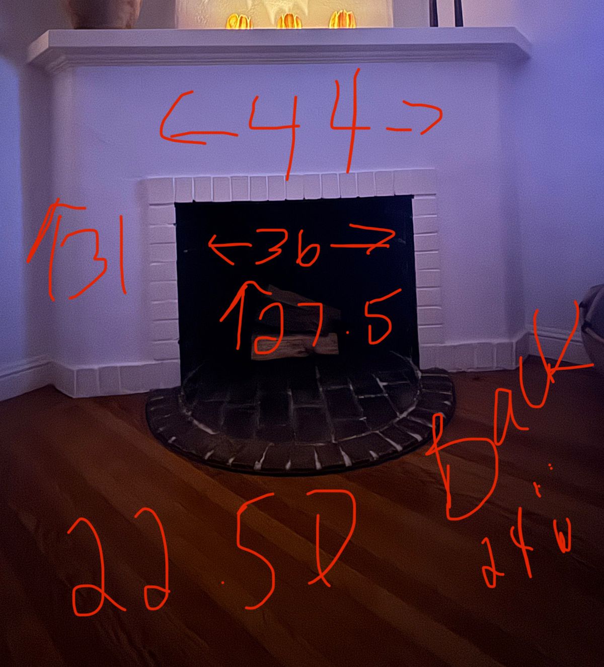 Fireplace Opening: 36" W x 27 1/2" H x 22 1/2" D x 24" W (Back)