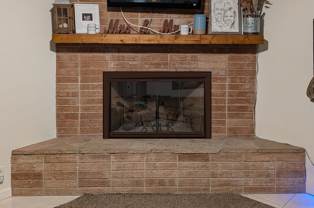Scale & Finish Disclaimer: Mockups shown on this site are not necessarily to scale and are meant to help you choose the style of your screen or door. The appearance of finishes represented may vary between digital monitors and screens. I do my best to recommend finishes that I believe will blend with your decor and flatter your fireplace. You can view finish options here: