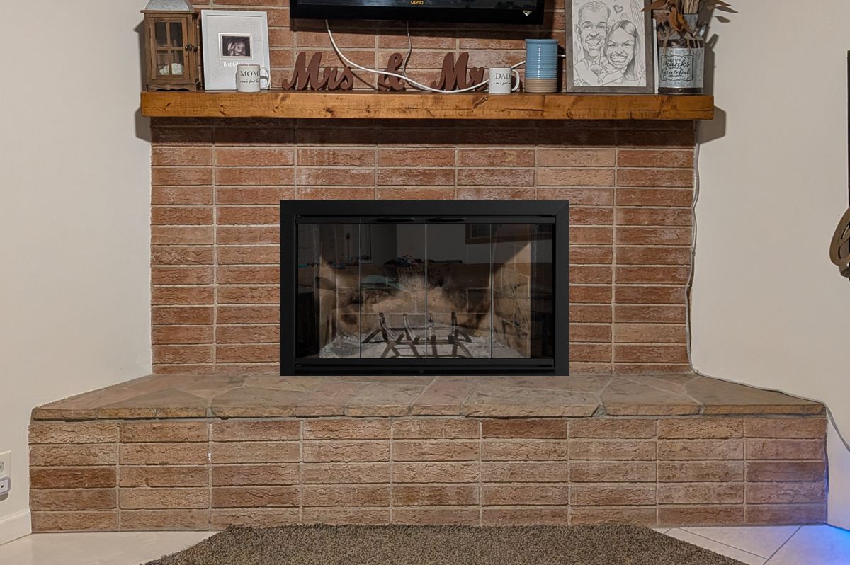 Customer Comments: We are looking to get glass doors to help with backdraft. Our hearth is raised about 1.5 inches above the fireplace floor. We aren't looking for anything extravagant, just something that is safe and effective. Approximate measurements are 40.75" wide, 26.75" from fireplace bottom to lintel, and finally .5" from lintel to the top brick and .5" from lintel to the front of the brick.